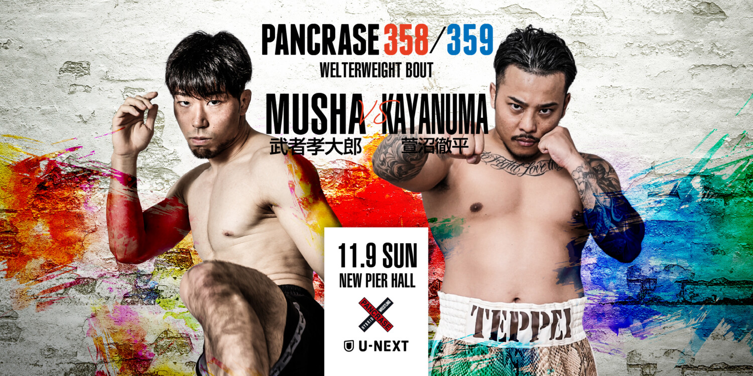 日時 2025年11月9日(日)PANCRASE 358 開場 12:15 開始 12:30 / PANCRASE 359 開場 16:50 開始 17:10(※いずれの時間も予定)