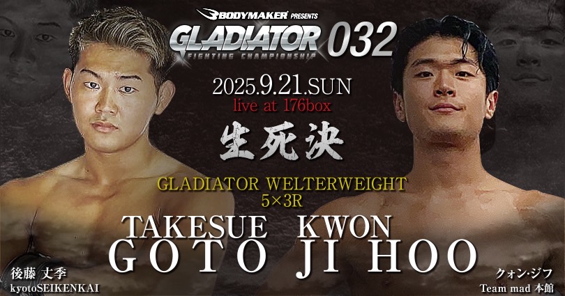 GLADIATOR 9.21 大阪 176BOX:4連勝中の後藤丈季、韓国の選手と初の国際戦