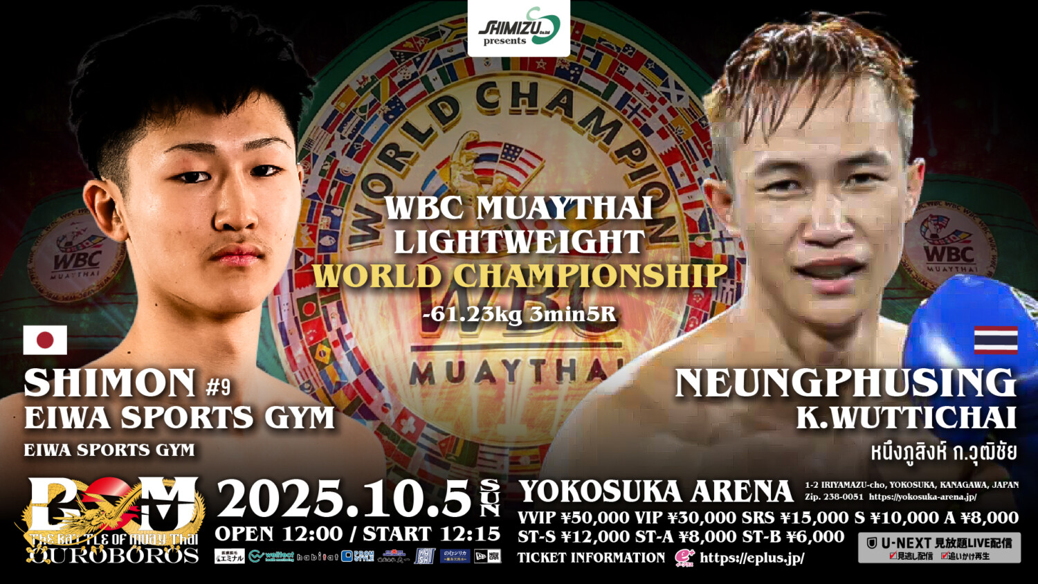BOM 10.15 横須賀アリーナ:11連勝中の士門・エイワスポーツジム、WBCムエタイ世界ライト級王座に挑戦。MIKE JOEと喜多村誠、初代BOM OFGミドル級王座懸け3度目の対戦