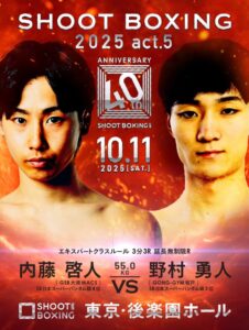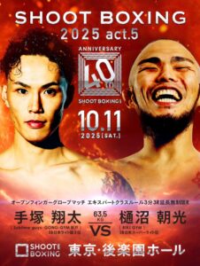 2025年10月11日(土)東京・後楽園ホールで開催される『SHOOT BOXING 2025 act.5』の第一弾対戦カードが発表された。(記事提供:シュートボクシング協会)