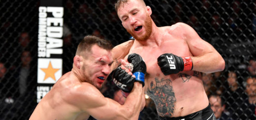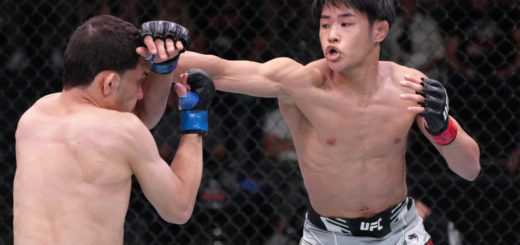ATLANTIC CITY, NJ – APRIL 21: (R-L) Keita Nakamura of Japan punches Tony Martin in their welterweight fight during the UFC Fight Night event at the Boardwalk Hall on April 21, 2018 in Atlantic City, New Jersey. (Photo by Patrick Smith/Zuffa LLC/Zuffa LLC via Getty Images)
