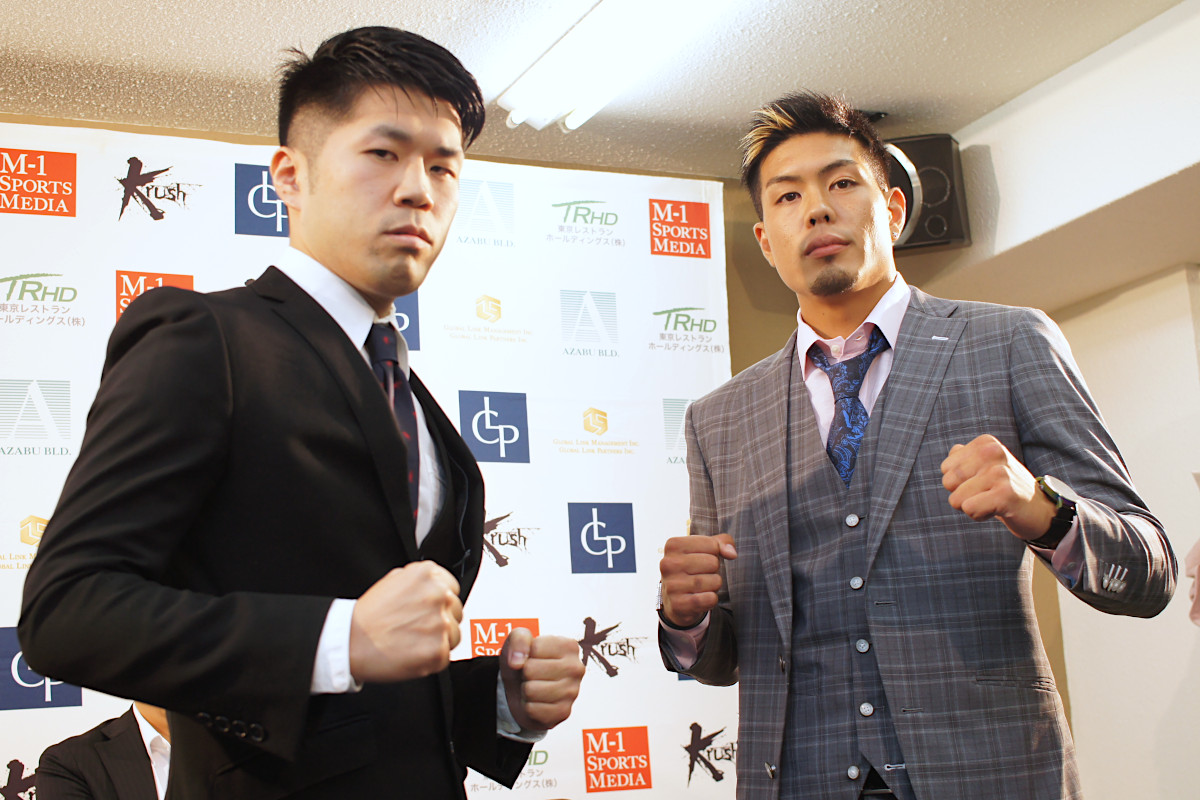 Krush 10.28 後楽園ホール:バンタム級王者・金子晃大×挑戦者・隼也ウィラサクレックが公開練習。記村一成×海斗、鈴木宙樹×スーパーアンジ 直前談話