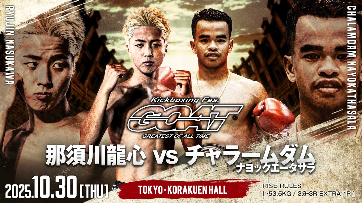 GOAT 10.30 後楽園ホール:新しい“キックフェス”、テレビ東京系で全国放送。那須川龍心「RISEは他団体とはレベルが違うと見せたい」、龍聖「どこが一番とかは無い」。松倉信太郎はISKA世界王座挑戦