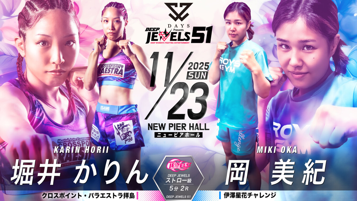 DEEP JEWELS 51(11月23日(日)ニューピアホール)の対戦カードが発表された。