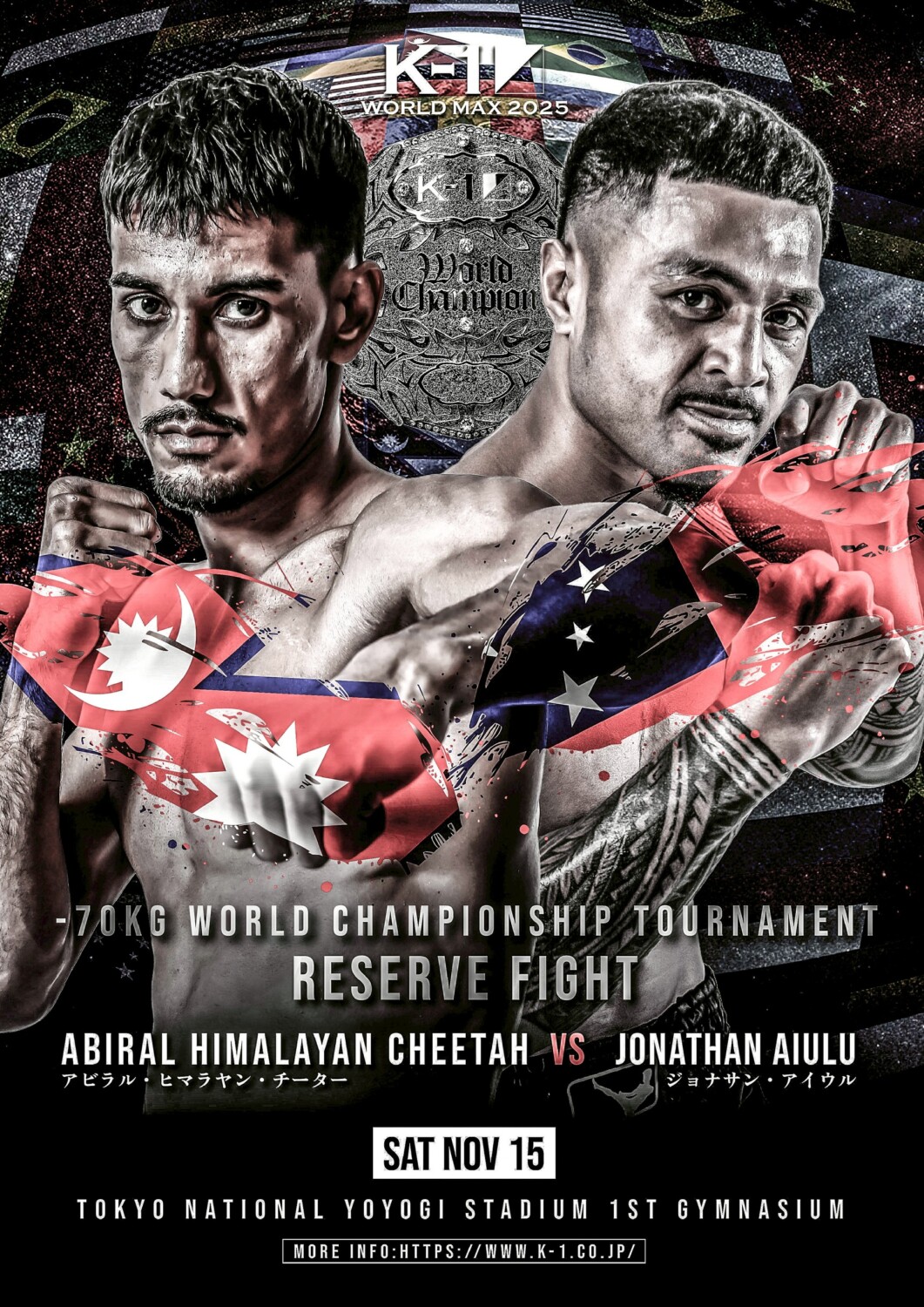 K-1 11月15日(土) 国立代々木競技場第一体育館大会で行われる「K-1 WORLD MAX 2025 -70kg世界最強決定トーナメント」のリザーブファイトがアビラル・ヒマラヤン・チーター vs. ジョナサン・アイウルに決まった。