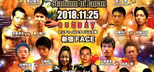 前回3月大会に続き、壱[いっせい]・センチャイジムが出場し、タイ人選手のウェイトップと対戦する。壱は10月のKNOCK OUTで繁那に判定勝ちし、WBCムエタイ日本スーパーバンタム級王座を獲得。今回は本場のタイ人相手に持ち前のムエタイスキルをどう発揮するか。
