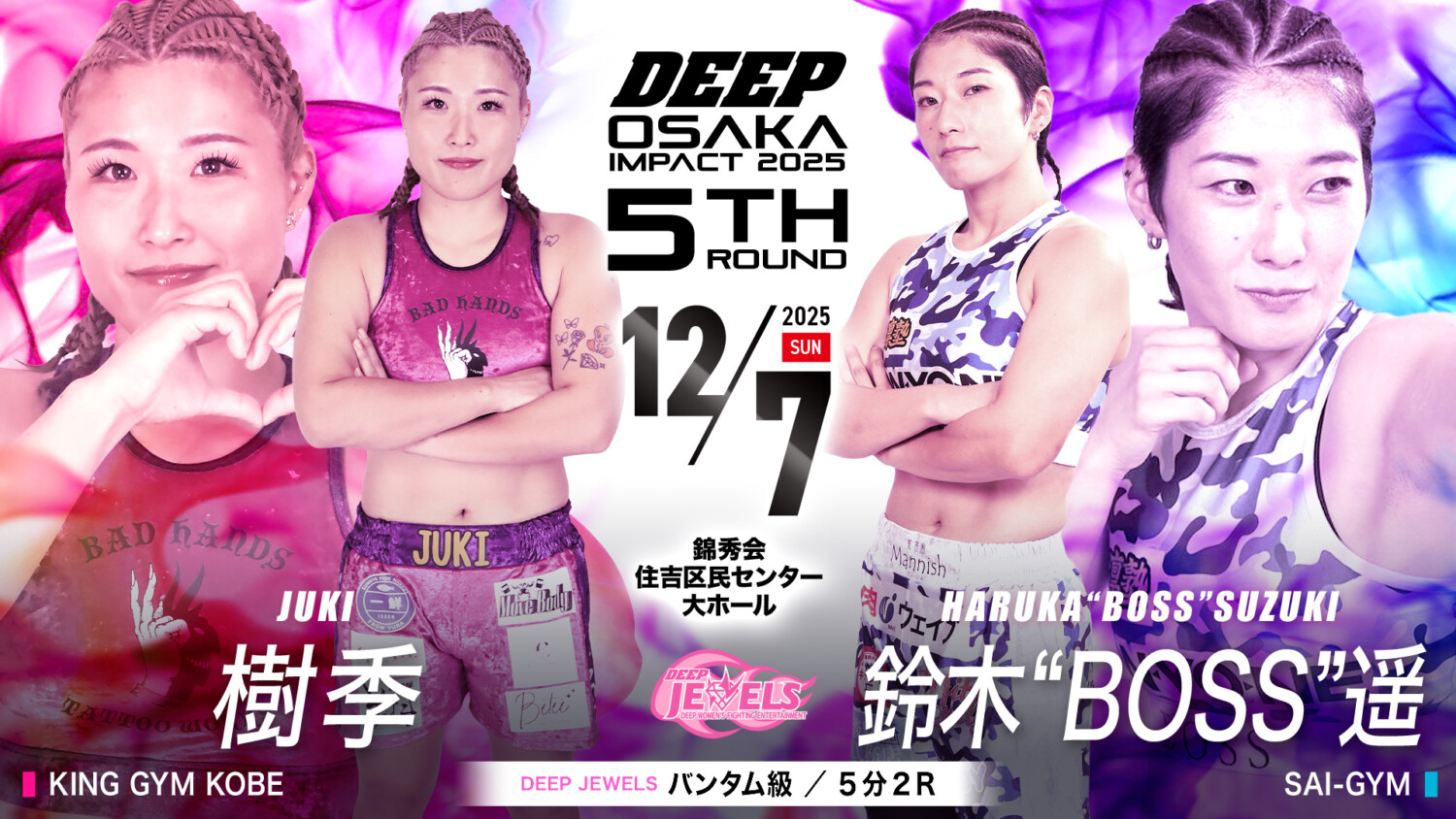 DEEP OSAKA IMPACT 2025 5th ROUND(12月7日(日)大阪・錦秀会 住吉区民センター大ホール)の対戦カードが発表された。