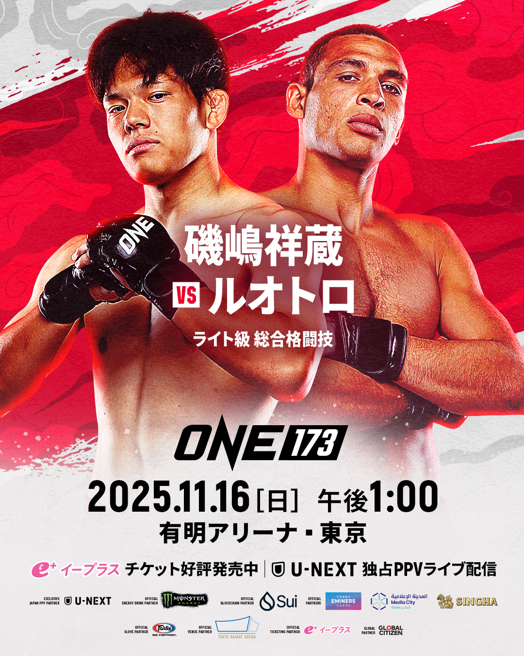 ONE 173: SUPERBON vs. NOIRI(11月16日(日)東京・有明アリーナ)に、MMAライト級・磯嶋祥蔵 vs. タイ・ルオトロが追加された。昨日発表の青木真也 vs. 手塚裕之に続き、2日連続で同級の試合が発表された。これで試合数は17試合に増えている。