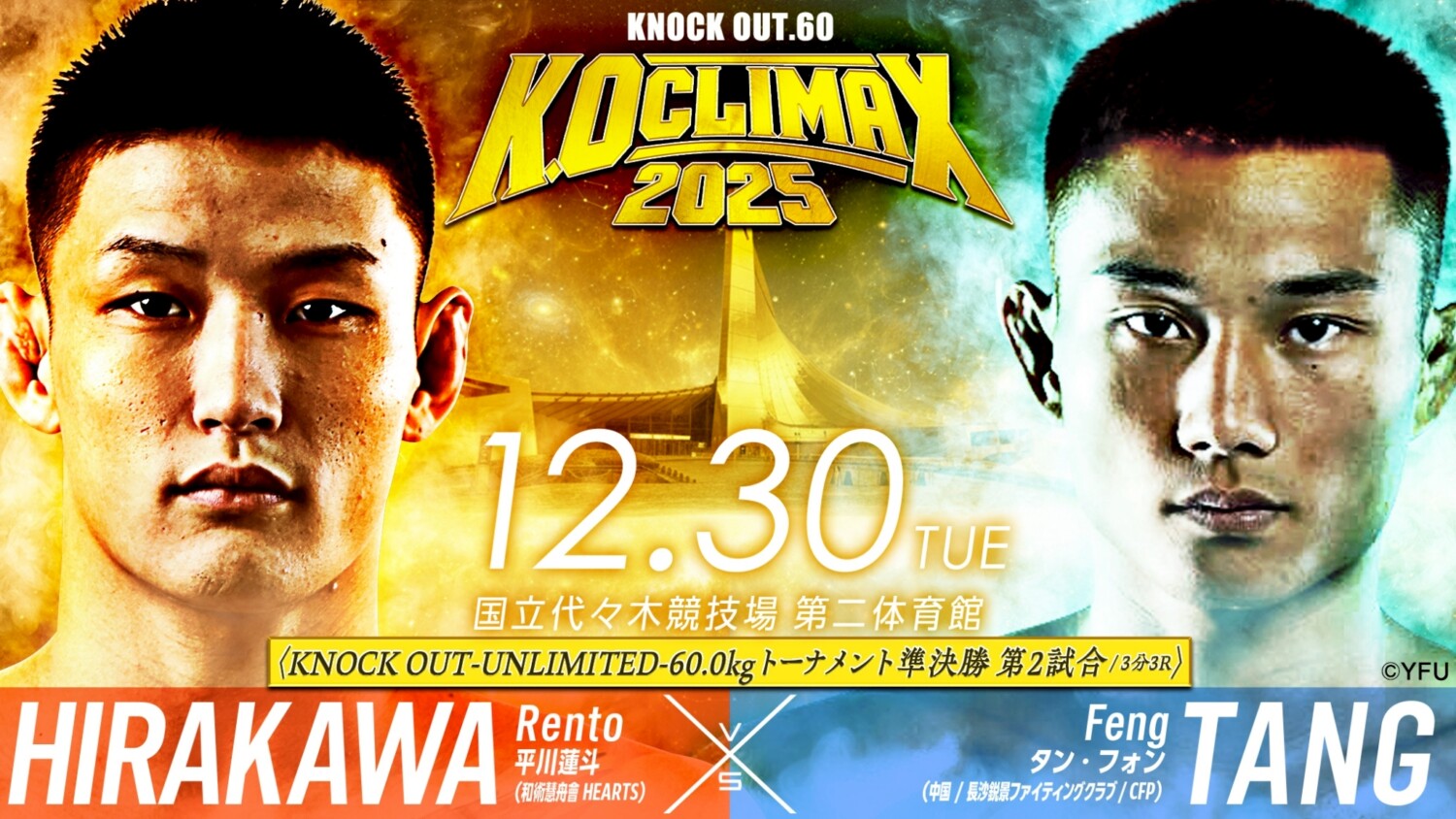 KNOCK OUT.60 ~K.O CLIMAX 2025~(12月30日(火)代々木競技場第二体育館)の第1弾対戦カード発表記者会見が11月11日、東京都内で行われた。この記事では倒してからの打撃も有効なUNLIMITEDルールの試合についてお伝えする。