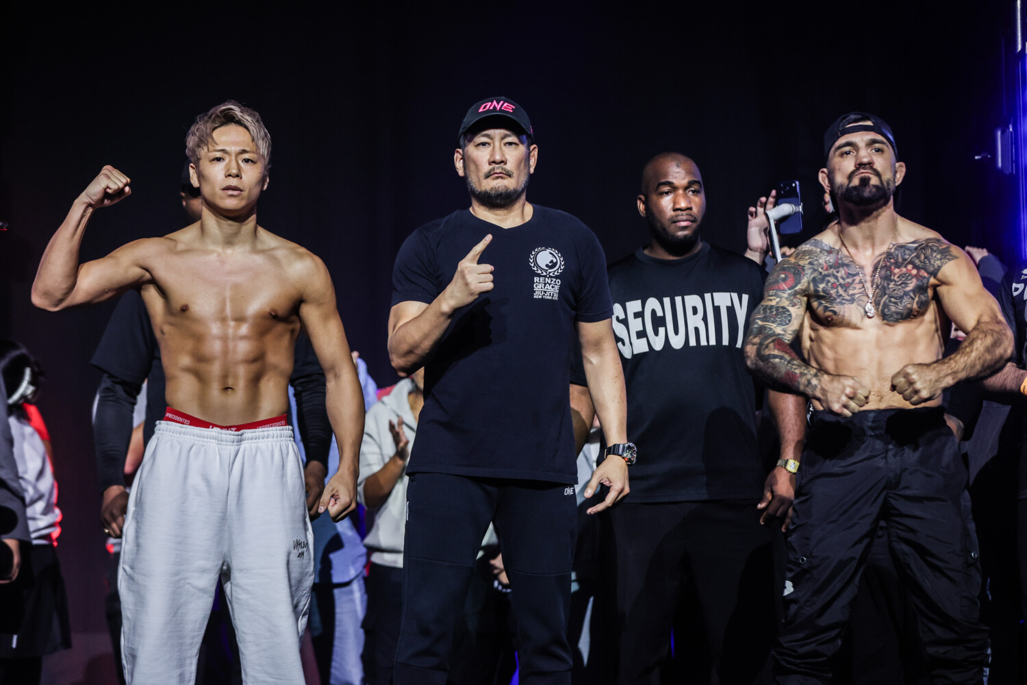 その他の選手は計量を無事クリアしている。写真は公式計量後の公開計量の様子。安保は登場せずグレゴリアンだけ登場した。(写真:(C) ONE Champioship)