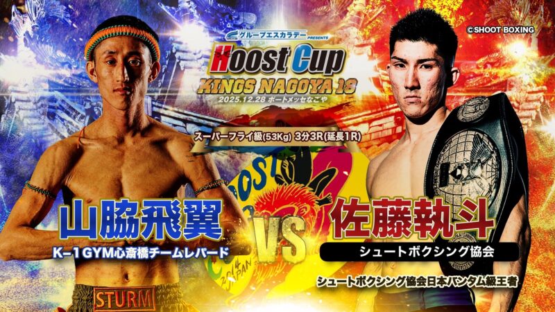 HOOST CUP KINGS NAGOYA 18(12月28日(日) ポートメッセなごや 第3展示場)に、シュートボクシング日本バンタム級王者・佐藤執斗とK-1 GROUPの山脇飛翼の一戦が追加された。