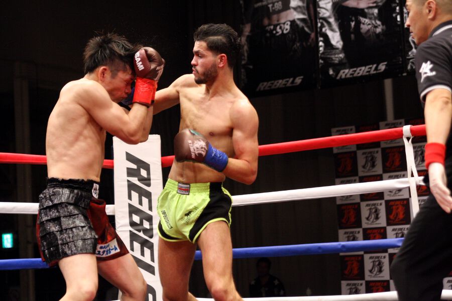 また、ザカリアと共にオランダ代表として出陣するENFUSION-60kg世界王者エナッシは2016年に2度目の来日経験があり、当時は24勝(10KO)1敗の戦績を持つオランダの超新星として注目を集めた。ぶんぶんパンチを振り回す超アグレッシブなファイトスタイルで国内トップクラスの実力者、町田光からダウンを奪ってBLADE 61kg級世界王者決定戦で勝利(※編集部注:16年11月のREBELS後楽園ホール大会・上写真右がエナッシ)。今回、2年半ぶりの来日となるが、今月24日(水・現地時間)にはメルビン・マヌーフ主催のWFL大会で-63kgトーナメントを制覇して世界王者になるなど、かなりの実力を付けて来日を果たす。