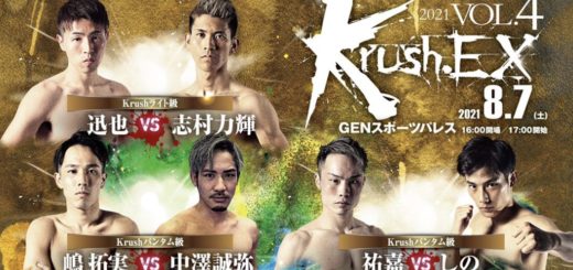 Krush 11.29 後楽園ホール(レポ):大岩龍矢、篠原悠人からダウン奪い判定勝ちしライト級王座初防衛。璃明武、8戦全勝の村田健悟を翻弄しスーパー・バンタム級王座4度目の防衛