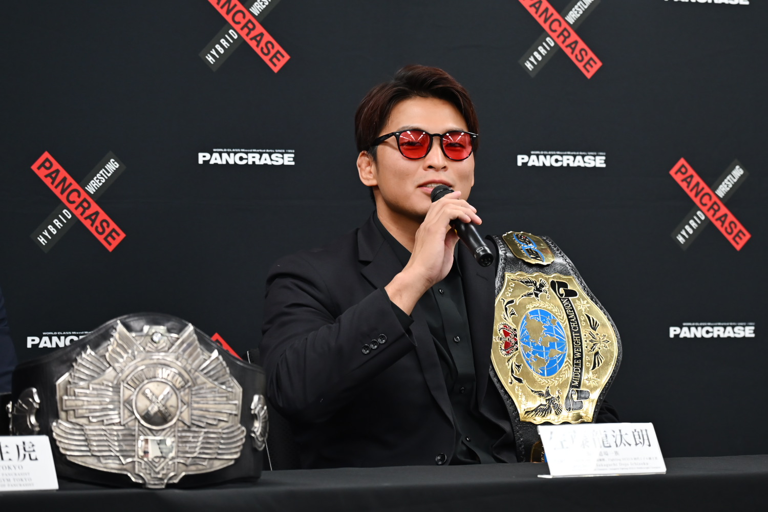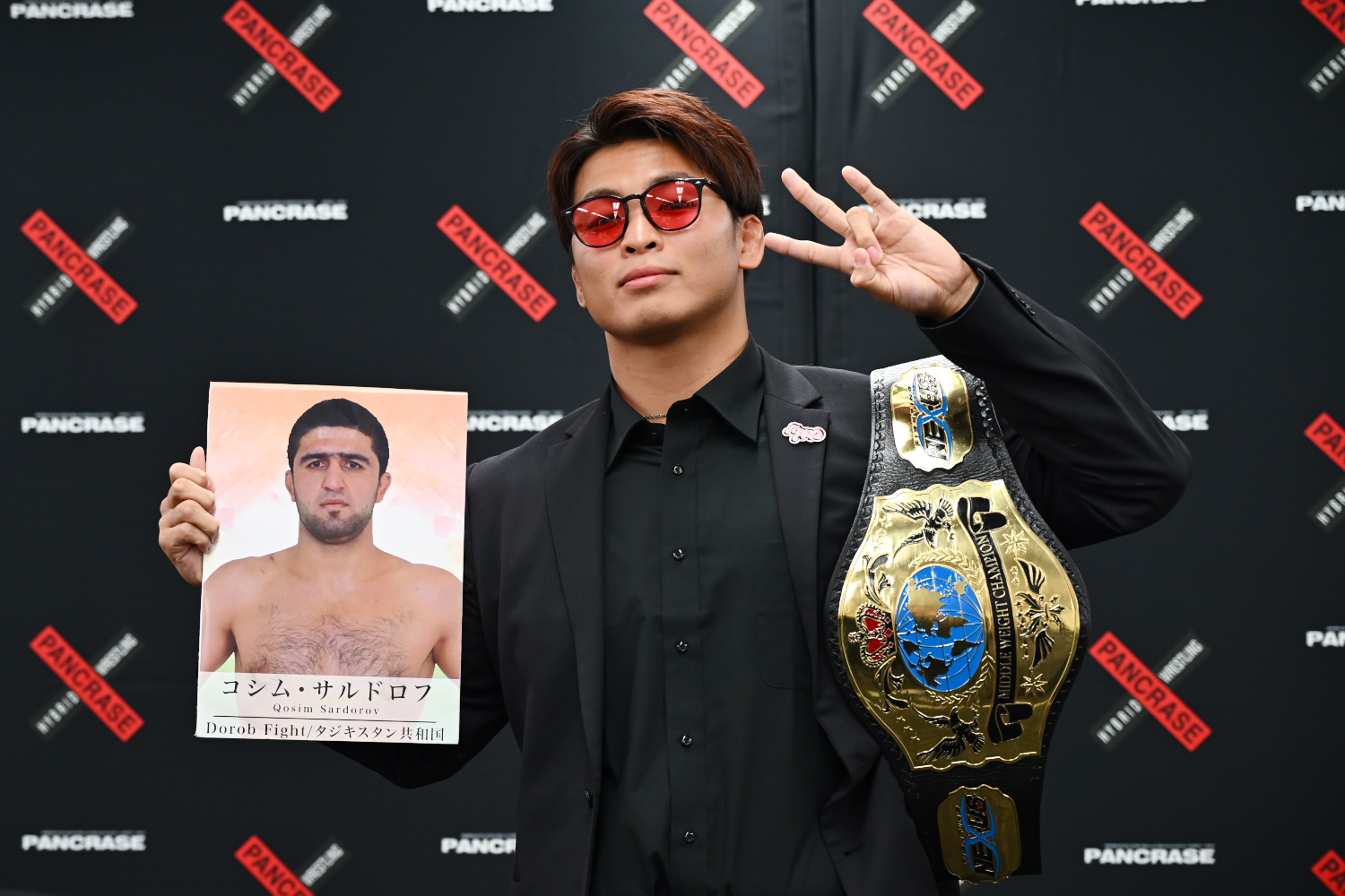 PANCRASE 360(12月21日(日)東京・立川ステージガーデン)で5戦5勝5フィニッシュのタジキスタン人・コシム・サルドロフとミドル級王座決定戦を行う佐藤龍汰朗が12月5日、東京都内での記者会見で試合に向けての意気込みを語った。