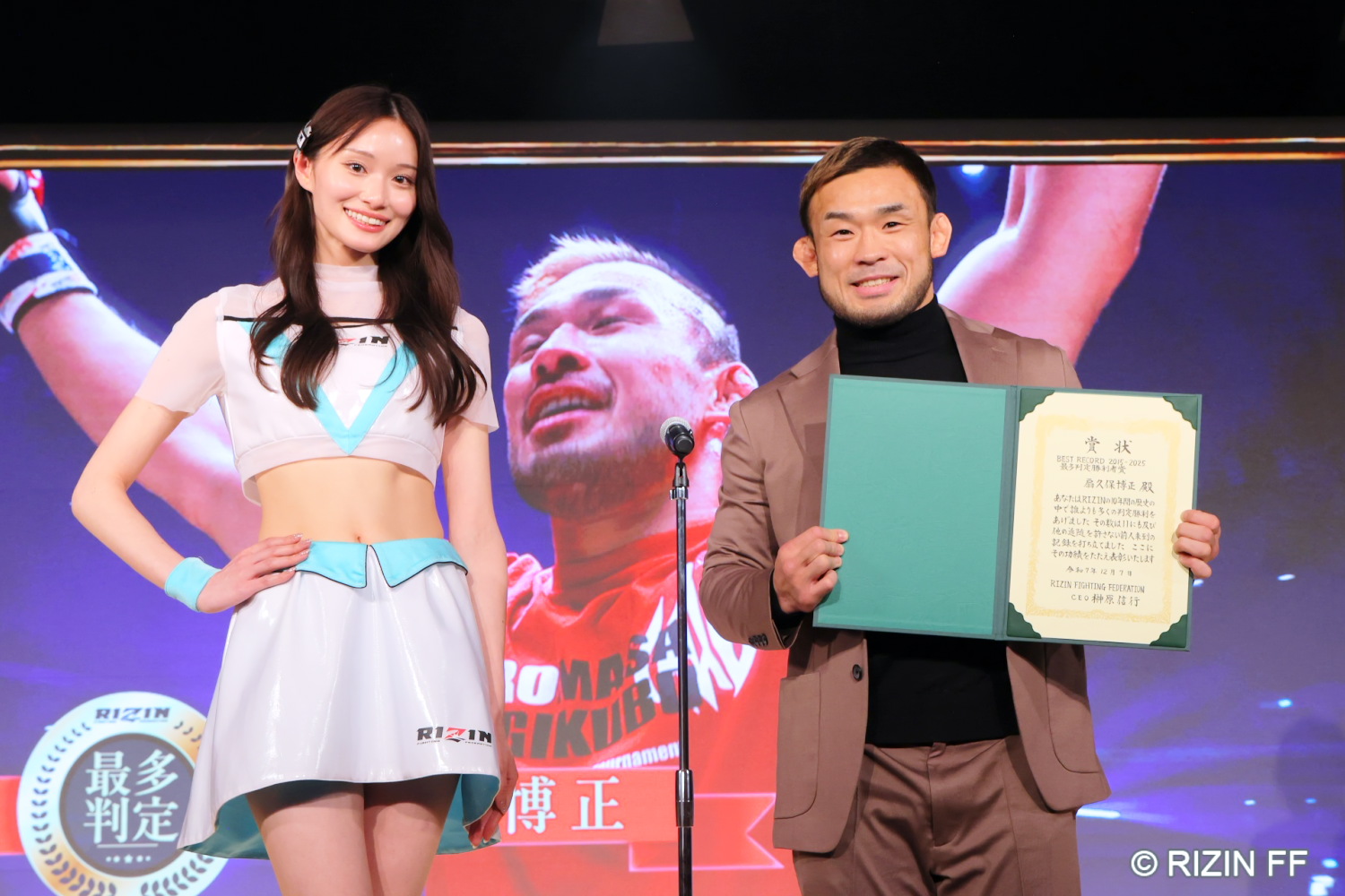 久しぶりに賞状をもらってうれしいですね。今まで無敗で勝ち続けているので、このままRIZINの20周年、30周年、自分の勝利と共に増やしていければと思います。