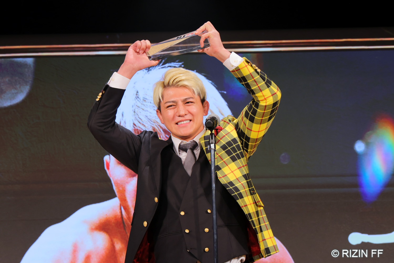 もちろんうれしいね。RIZIN入る時はその(受賞する)イメージがないね。(プレゼンターの)桜庭(和志)先生がこれ(=トロフィー)を(私に)あげて、もう1個の夢ができました。とても良かったです。