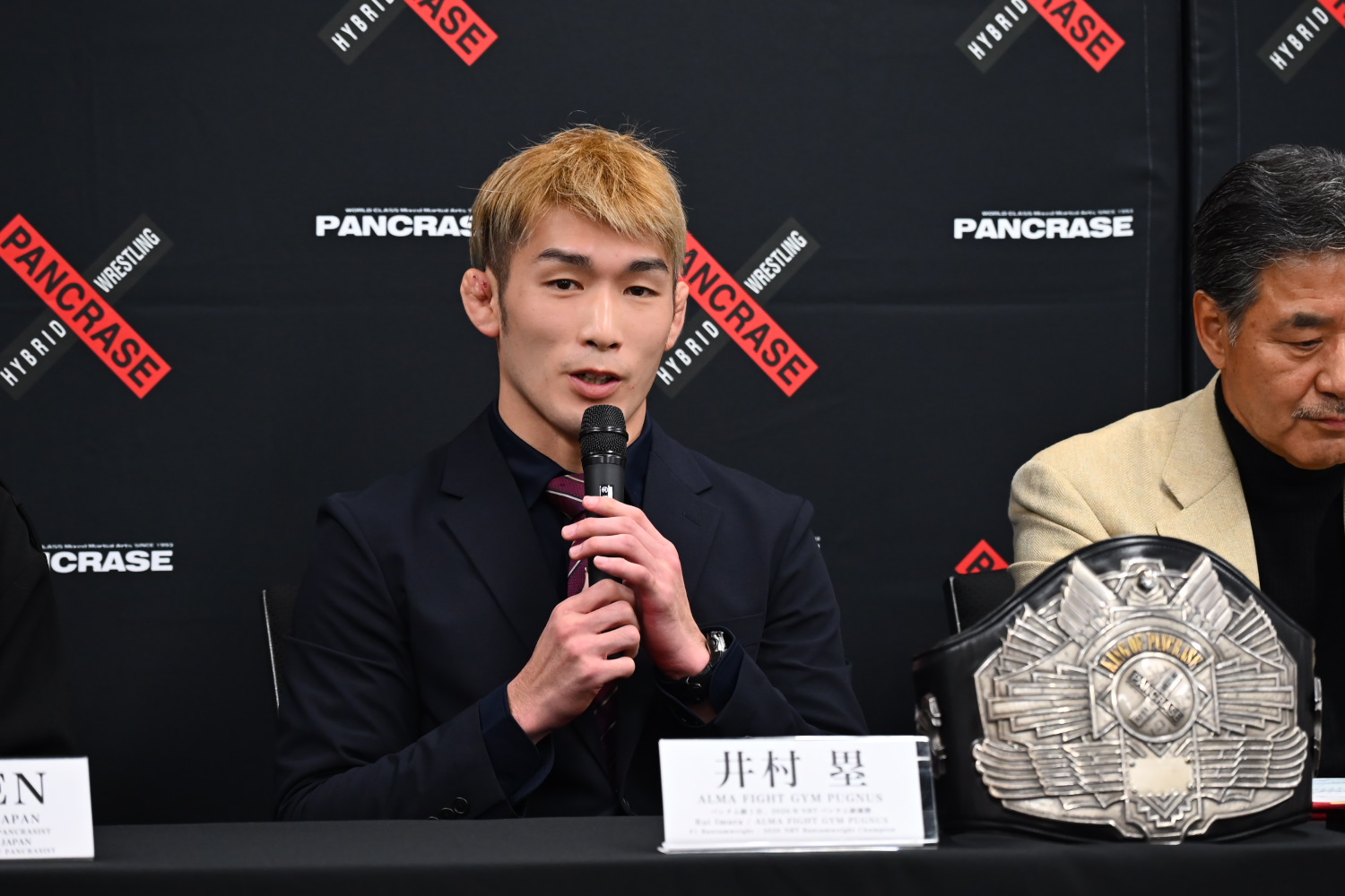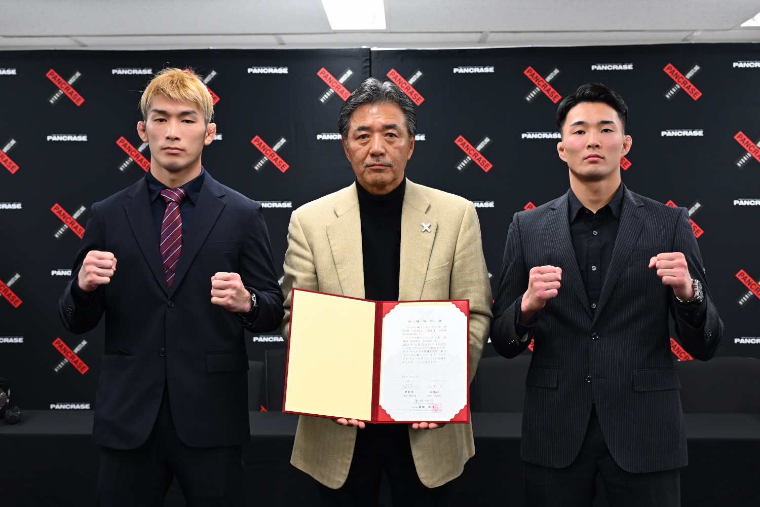 PANCRASE 360(12月21日(日)東京・立川ステージガーデン)でのパンクラス・バンタム級王座決定戦で対戦する井村塁と田嶋椋が12月5日、東京都内での調印式で試合に向けての意気込みを語った。両者は昨年3月立川大会で対戦し、井村が判定で田嶋を下している。