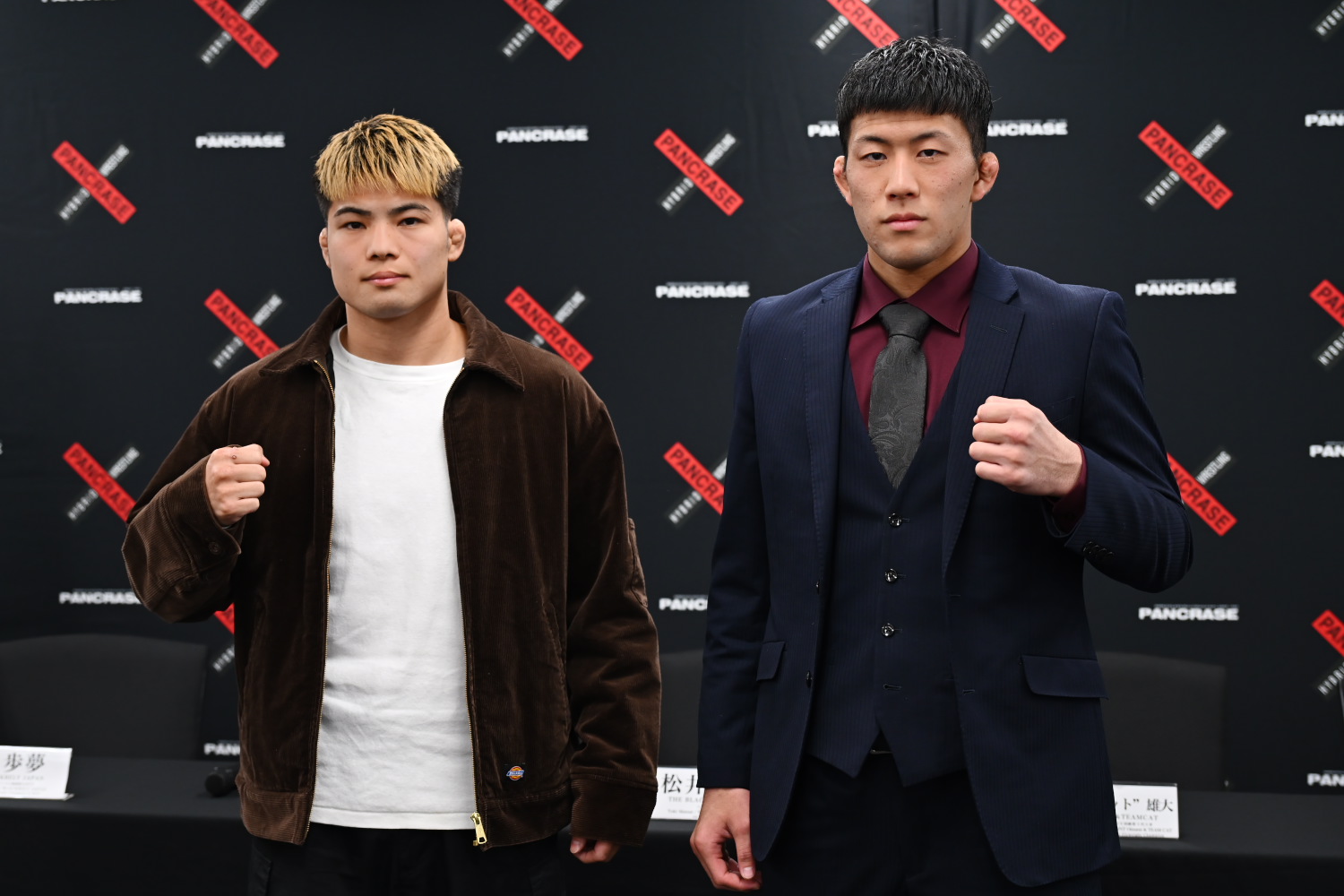 MMA転向前にキックボクシングやラウェイのタイトルを獲得し、RIZINでは那須川天心とも拳を交えた打撃のスペシャリスト・浜本。柔術全日本選手権優勝の実績を持ち、22歳の若さで黒帯を獲得した寝技のスペシャリスト・岸田。