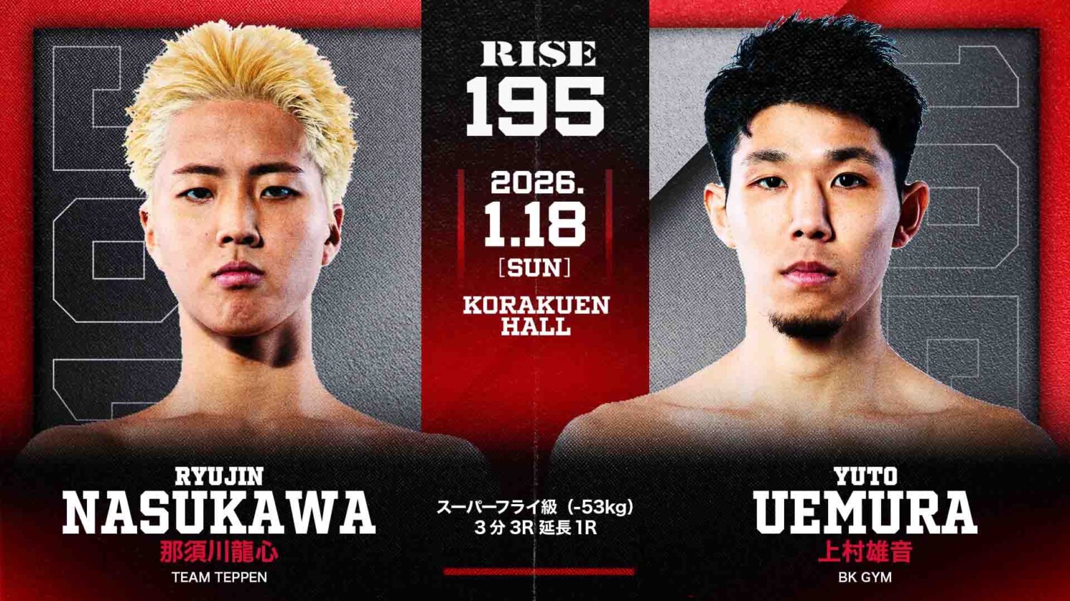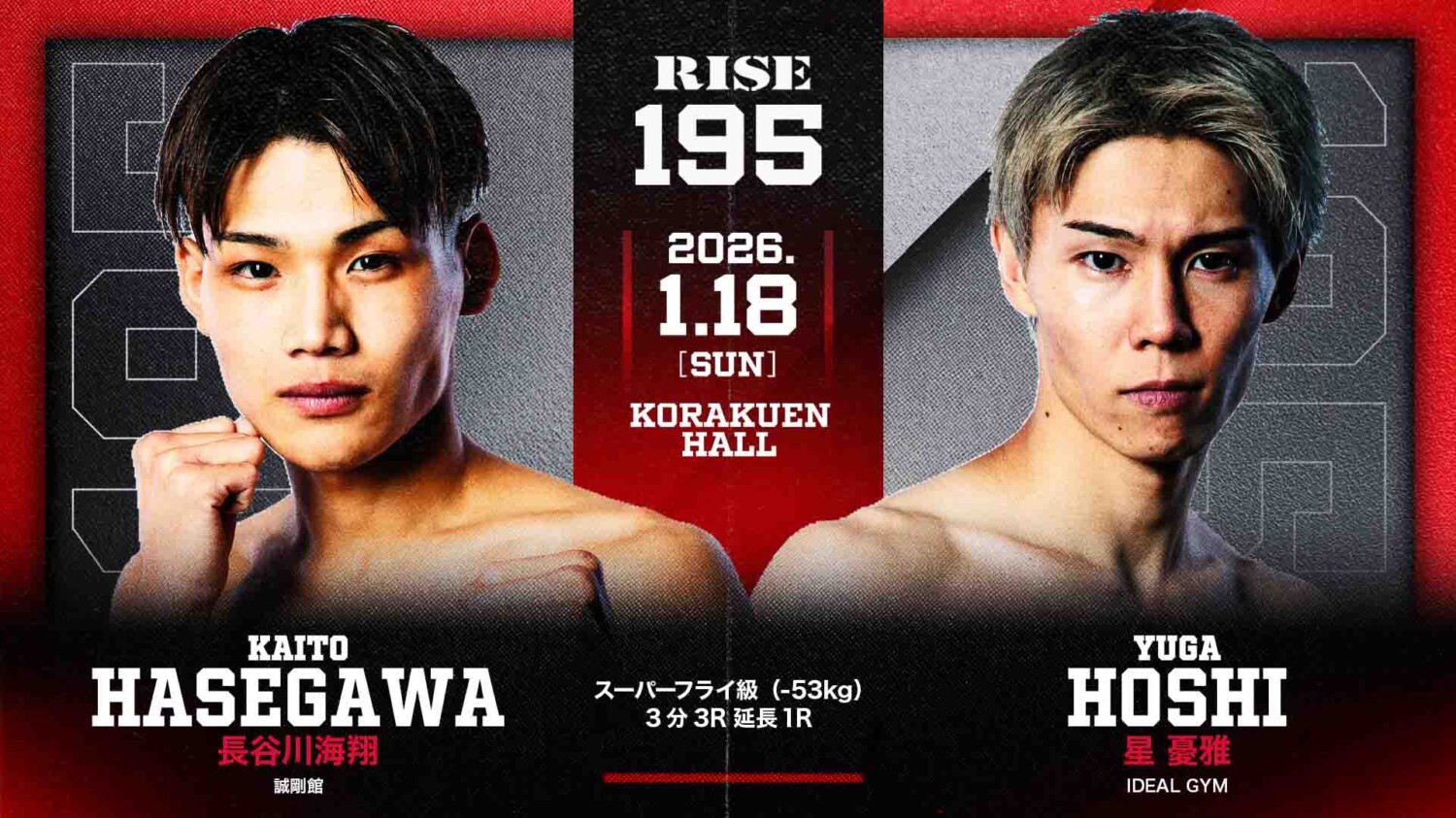 2026年のRISEの開幕戦となる「RISE 195」(1月18日(日)後楽園ホール)の第1弾決定カード2試合が発表された。花岡竜が王座に君臨するスーパーフライ級では、那須川龍心(1位)vs. 上村雄音、長谷川海翔(3位)vs. 星憂雅(4位)の2カードが組まれた、事実上の「王座挑戦者決定トーナメント一回戦」となる。