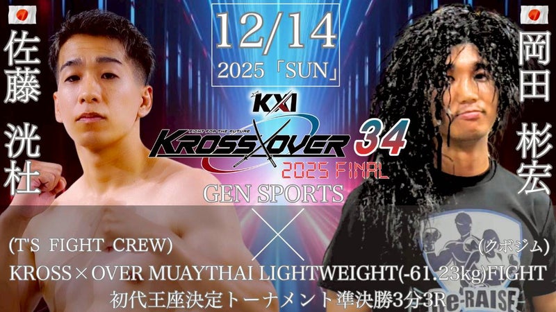 KROSS×OVER 12.14 GENスポーツパレス:吉宗、×森本一陽で初代KICKスーパーウェルター級王者決定戦。佐藤洸杜×岡田彬宏でMUAYTHAIライト級初代王者決定トーナメント準決勝