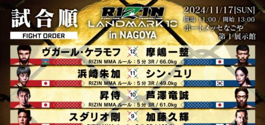 なお、18日に発表された雑賀“ヤン坊”達也 vs. “ブラックパンサー”ベイノアの契約体重が、ライト級リミットの71kg契約から73kg契約に訂正されている。