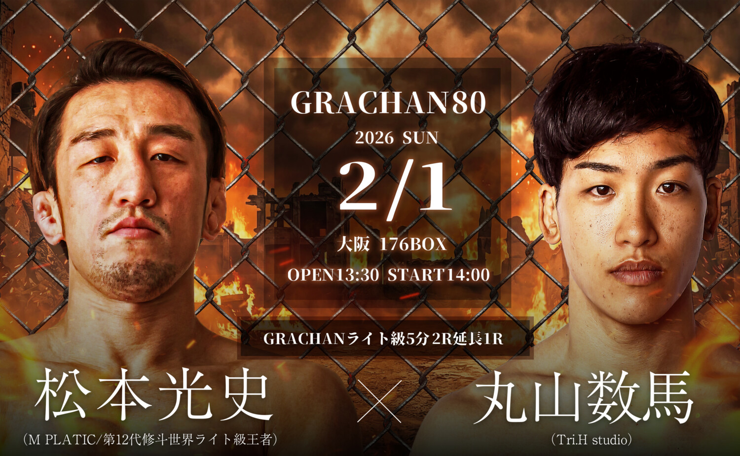 GRACHAN 2.1 大阪 176BOX:小田魁斗、小林大介とフライ級王座防衛戦。松本光史×丸山数馬ほか決定
