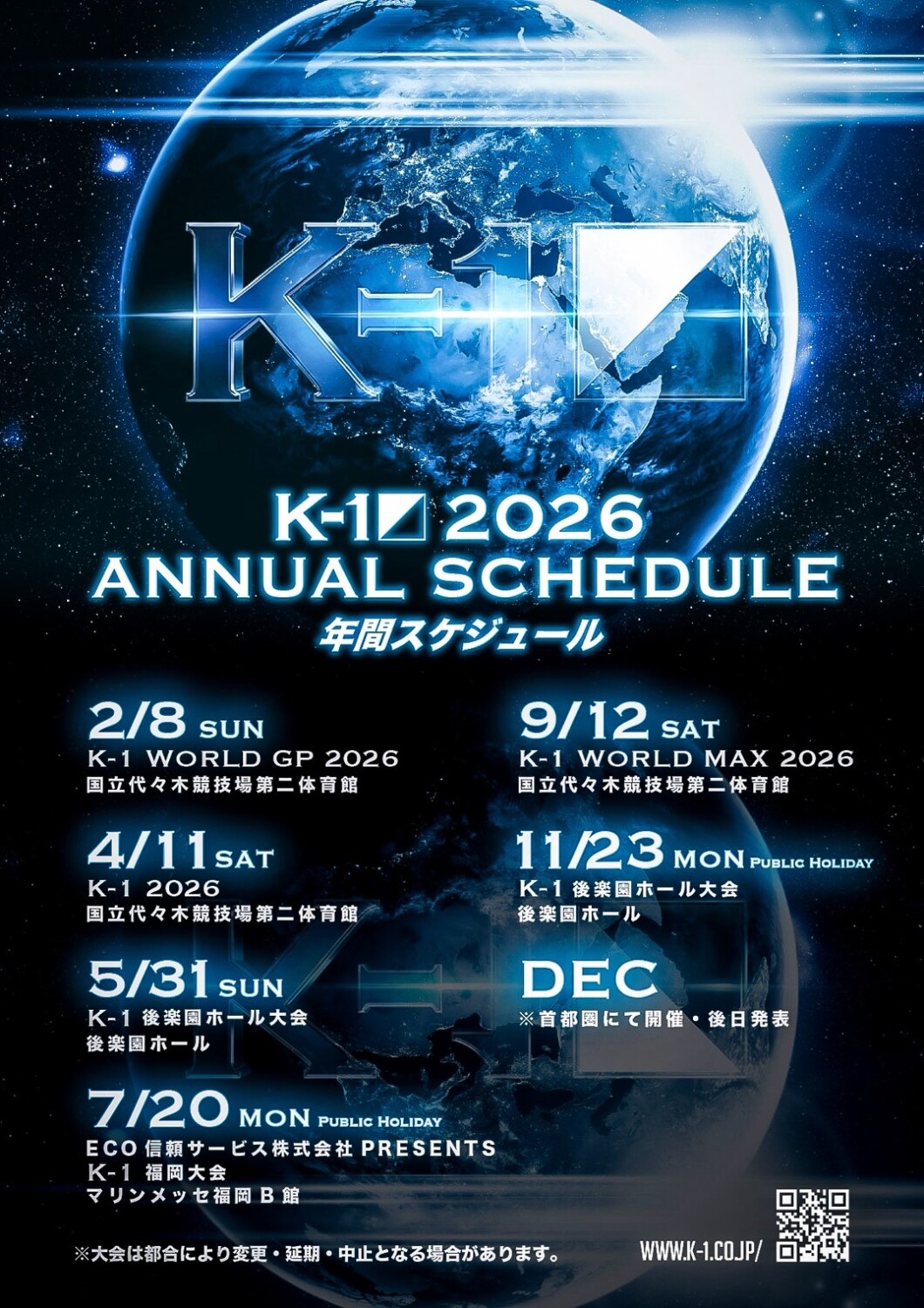 ◆2026年 K-1 プロ大会スケジュール