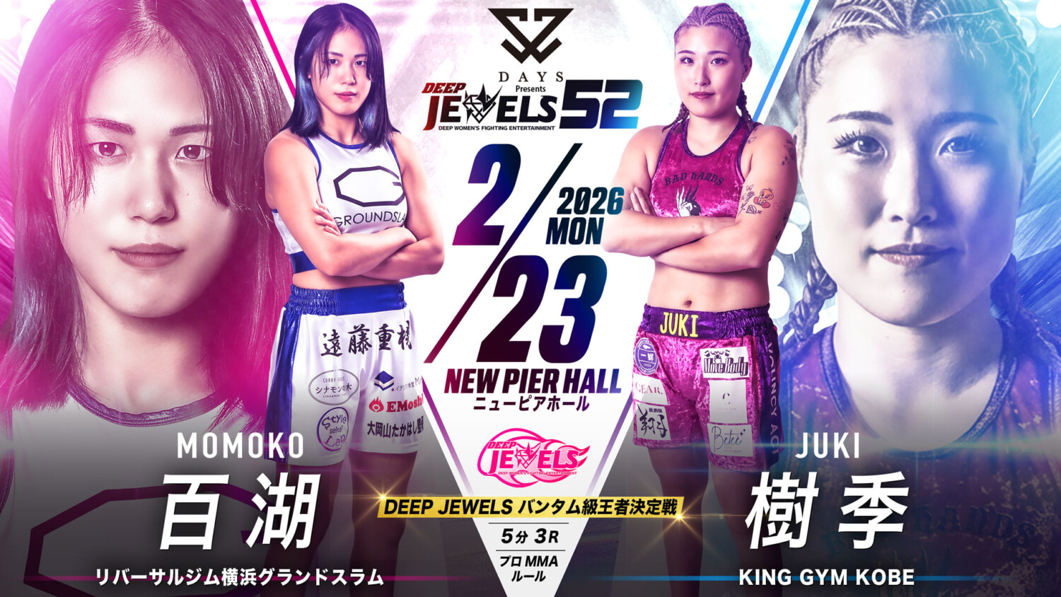 DEEP JEWELS 52(2月23日(月/祝)東京・ニューピアホール)の対戦カードが発表された。
