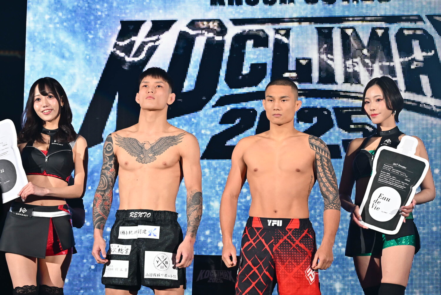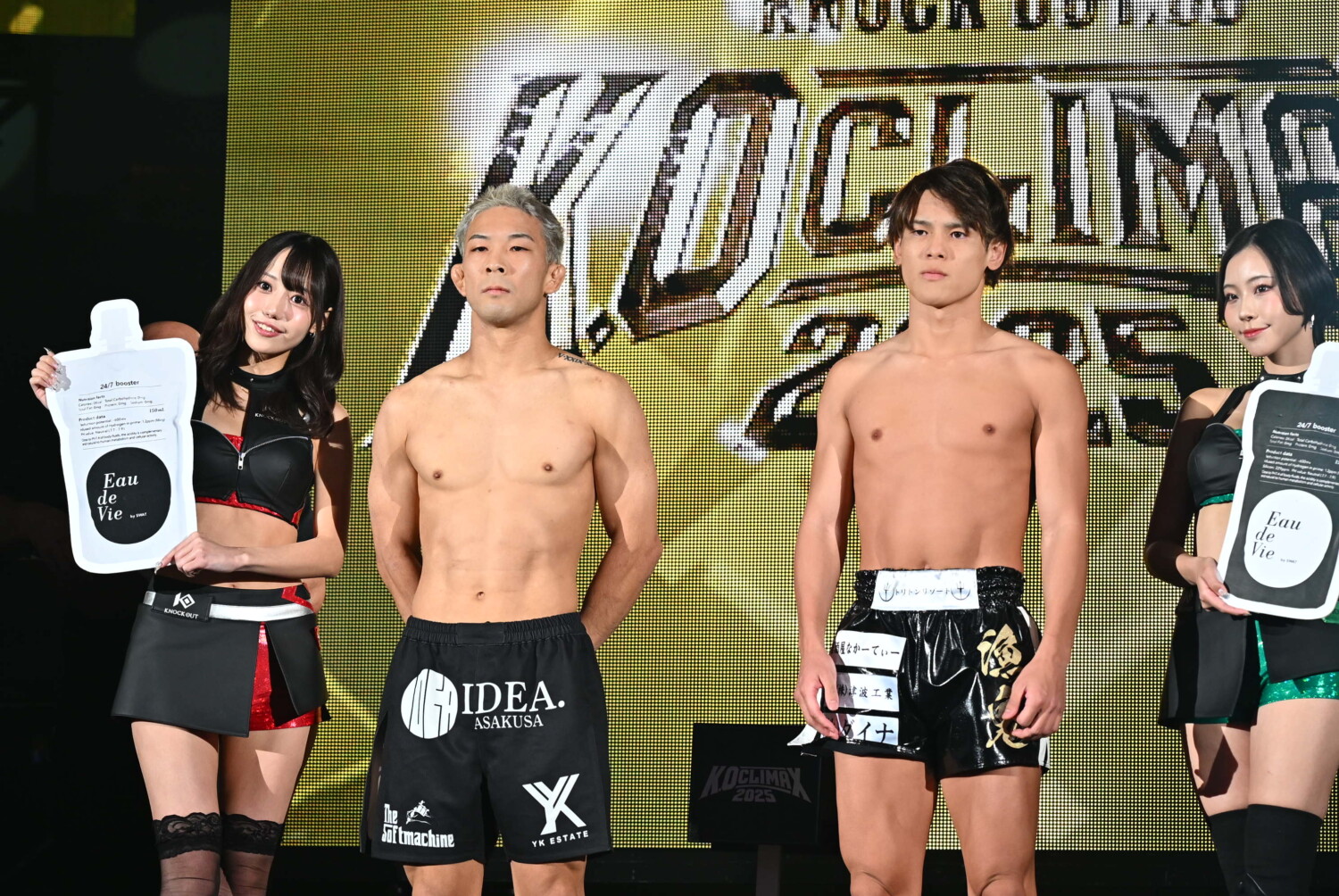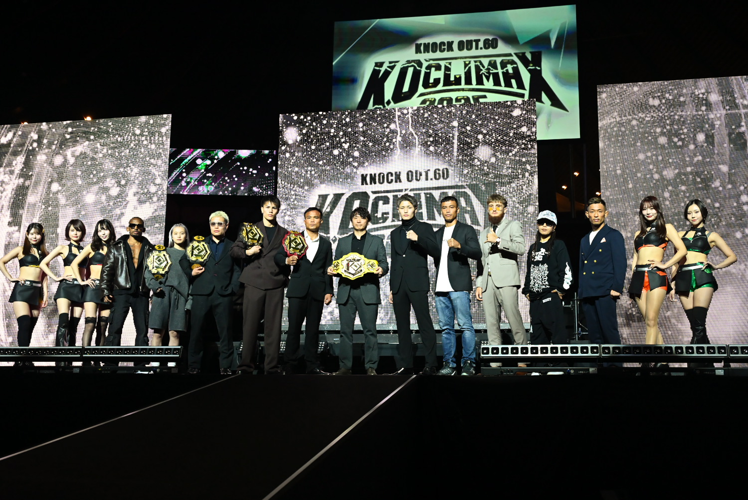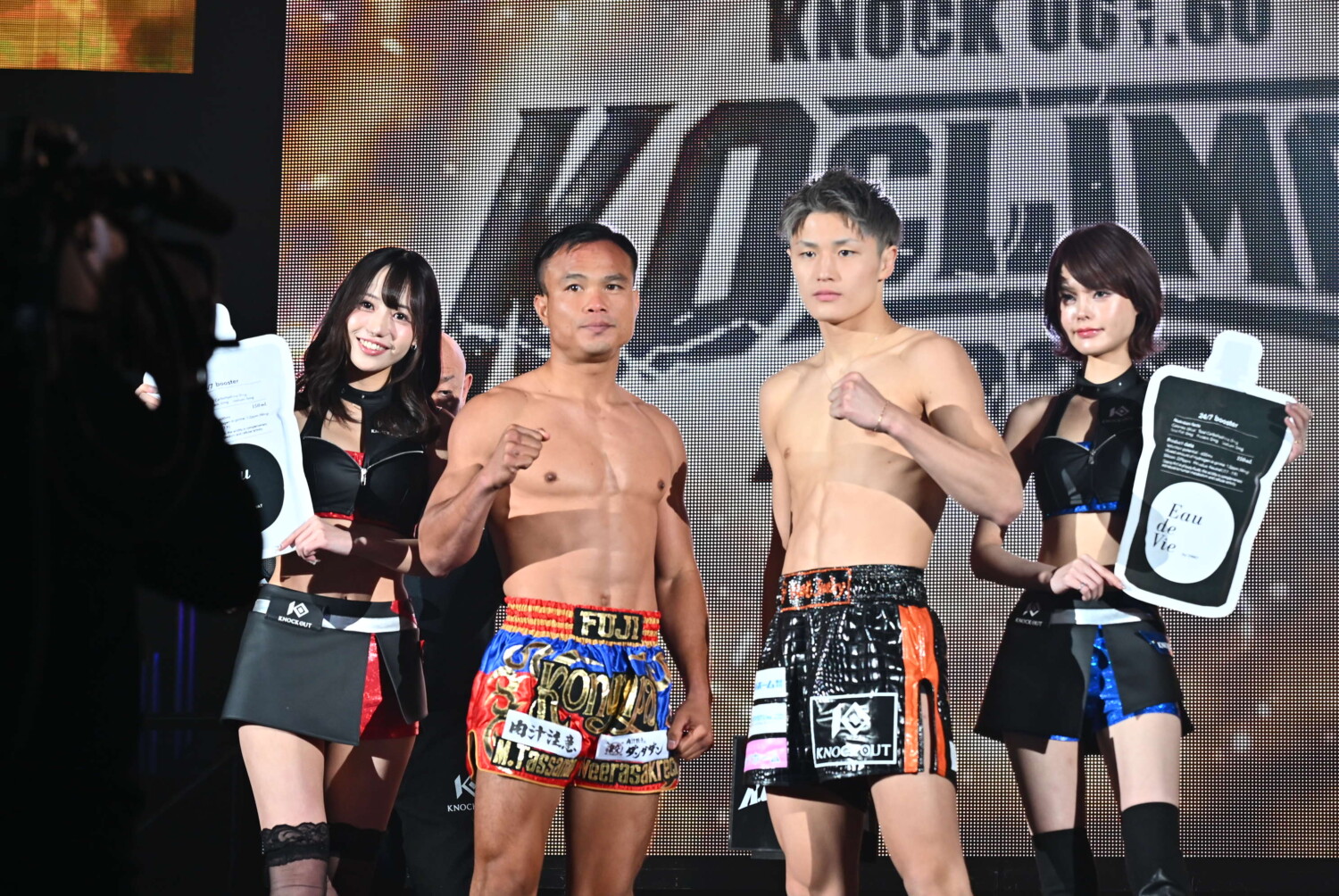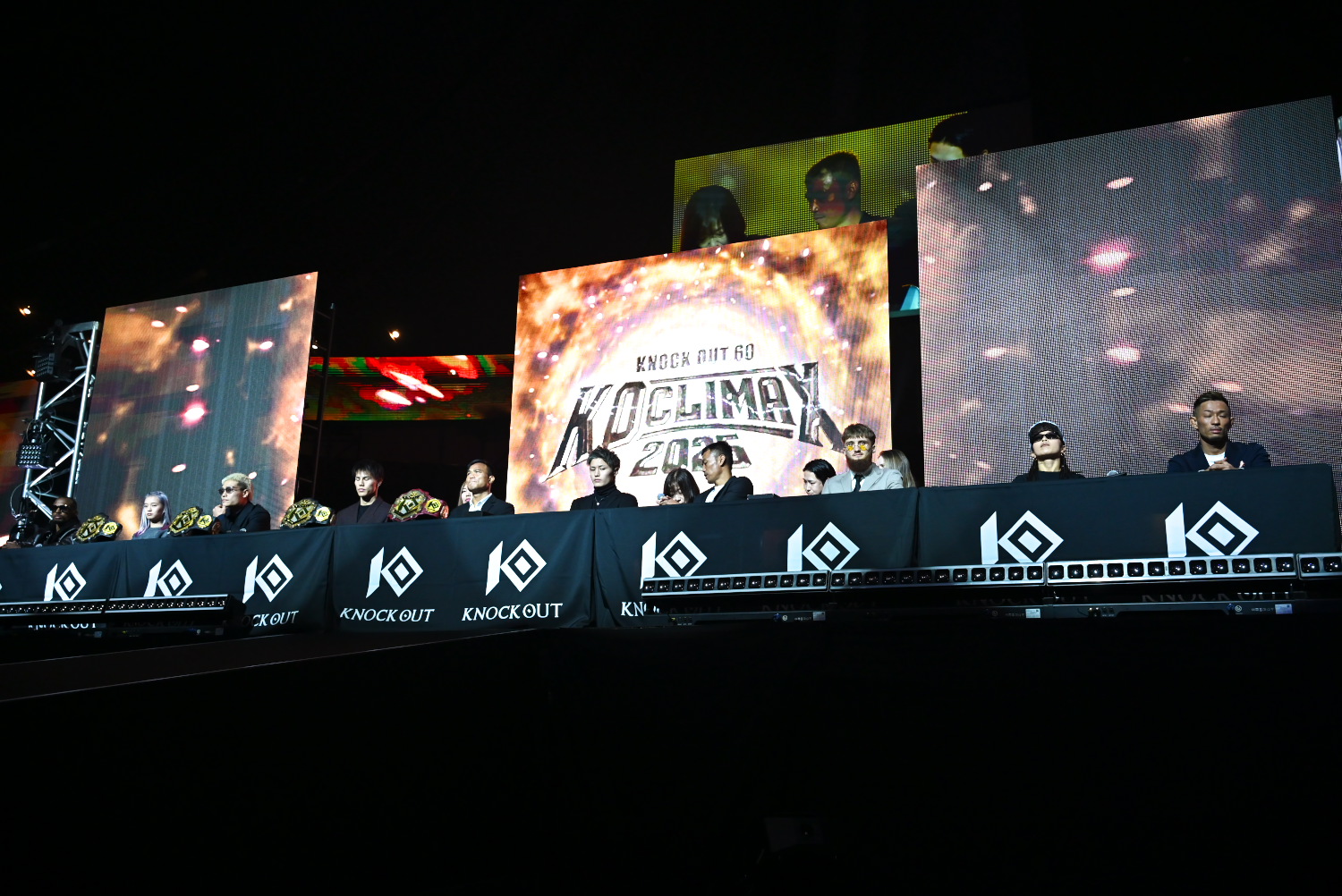 KNOCK OUT.60 ~K.O CLIMAX 2025~(12月30日(火)代々木競技場第二体育館)の公式計量が29日に行われ、全選手がクリアした。既に八角形リング、ステージが設営済の同会場で、公開計量セレモニーと記者会見が行われた。