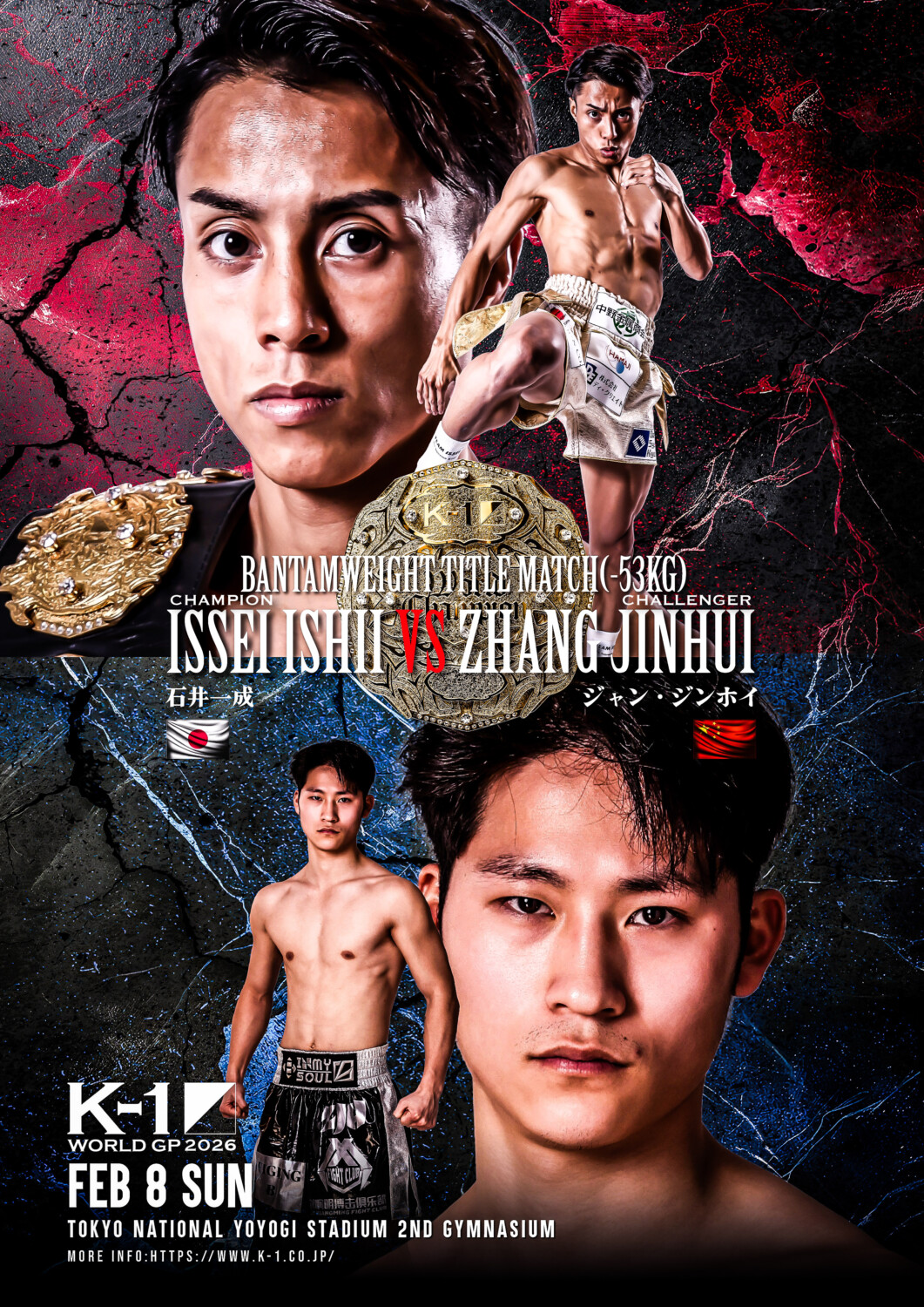 K-1 2月8日(日)国立代々木競技場第二体育館大会での石井一成のK-1バンタム級(53kg)王座初防衛戦の相手が、ジャン・ジンホイ(中国/リュウ・シャンミンファイトクラブ/CFP)に決まった。