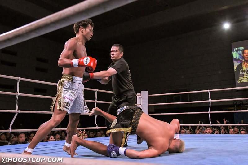 3R、ダメージの深い山口にガードを固めた麻原がじりじりとプレッシャーをかけ、山口は下がりながらカウンターを狙う。麻原のラッシュでまたも山口がダウンし、立ち上がり続行するが、ダメージの深い山口にレフェリーがストップを宣告し、麻原のTKO勝利となった。両者の激しい攻防に会場は大いに盛り上がった1戦であった。勝利した麻原は、5月に敗れ手放したタイトルの保持者の小川翔に再戦を要求した。