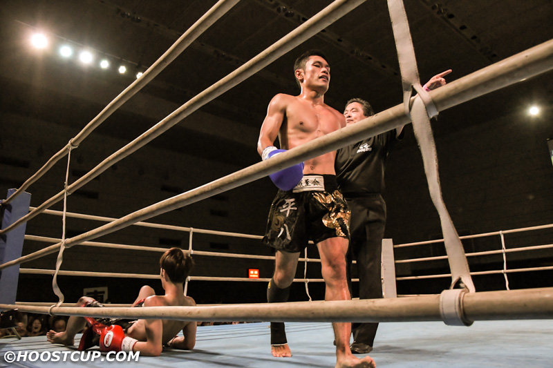 ※1R力哉に2ダウン、3RHΛLに1ダウン。HΛLはワセリン塗布の反則で減点1スタート