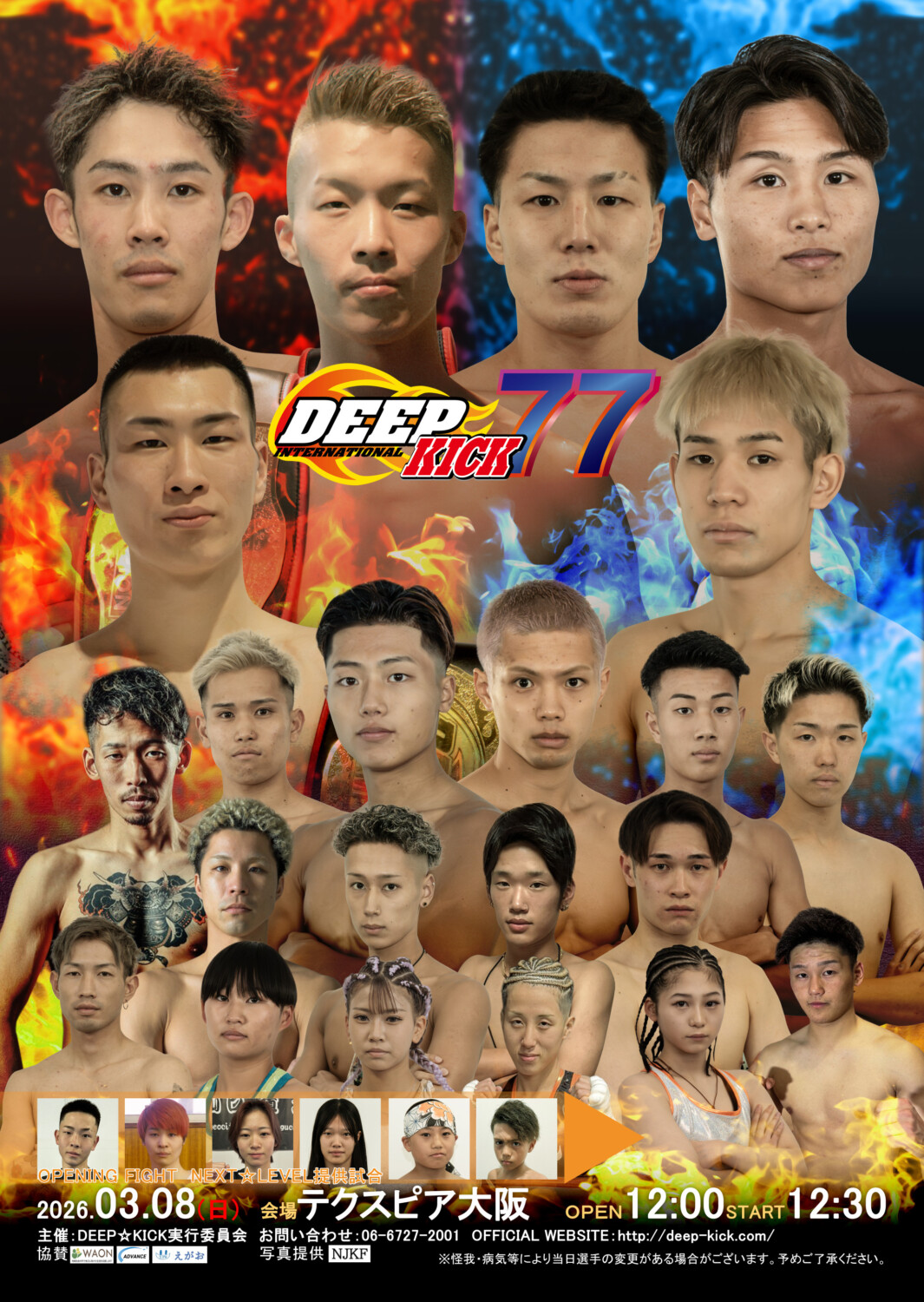 2025年も14大会を開催し数多くの名勝負・王者を生み出したDEEP☆KICKの2026年初のナンバーシリーズとなる『DEEP☆KICK 77』、DEEP☆KICK-70kg/-55kg/-60kgと3階級における3大タイトルマッチにDEEP☆KICK-57.5kg挑戦者決定戦など今回も激戦必須のカードが多数出揃った。この試合を皮切りに2026年を駆け上がるニュースターの誕生に是非期待してほしい。