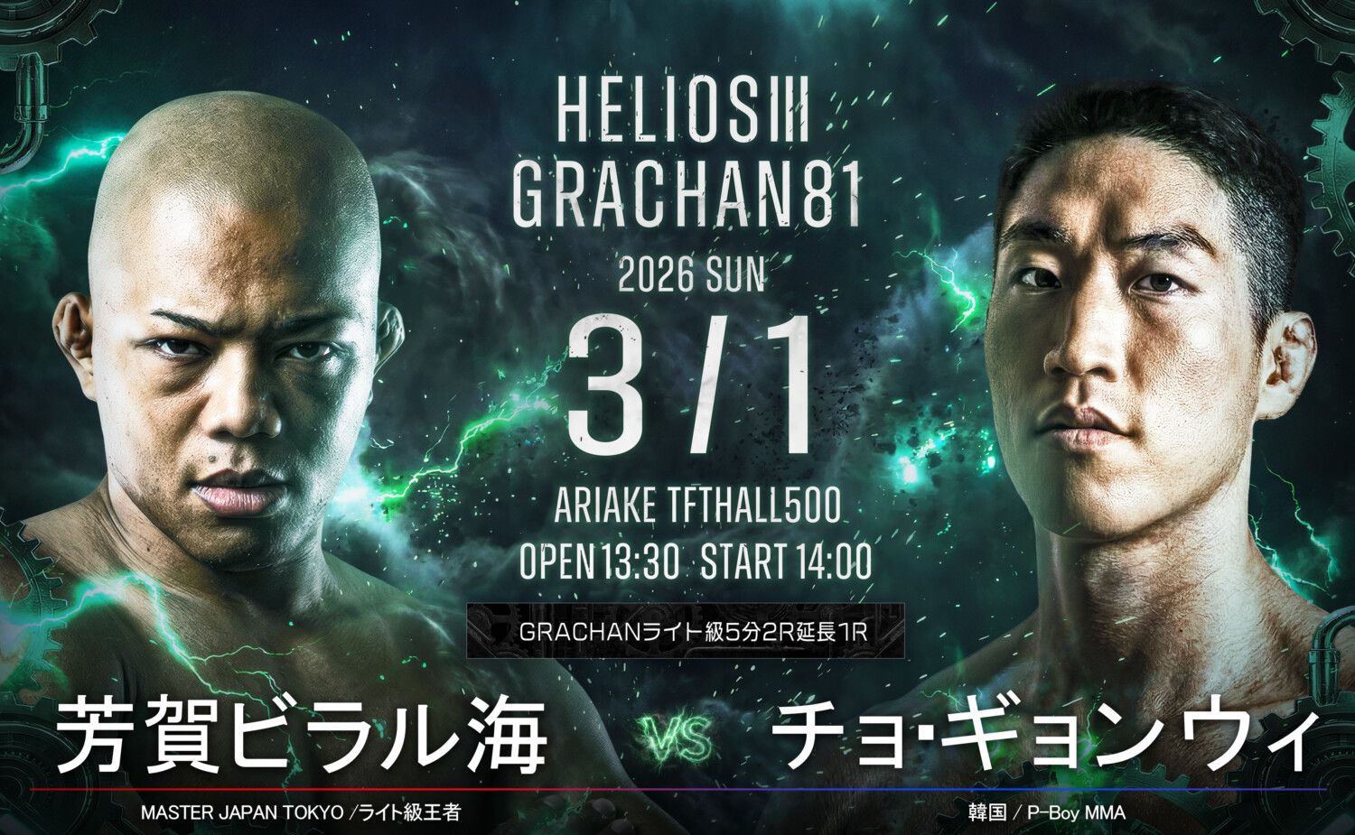 GRACHAN「Helios III & GRACHAN 81」(3月1日(日)東京・有明TFTホール500)の主要対戦カードが発表された。今回は第1部 Helios III、第2部 GRACHAN 81という2部構成となっており、チケット1枚で2部とも観覧できる。