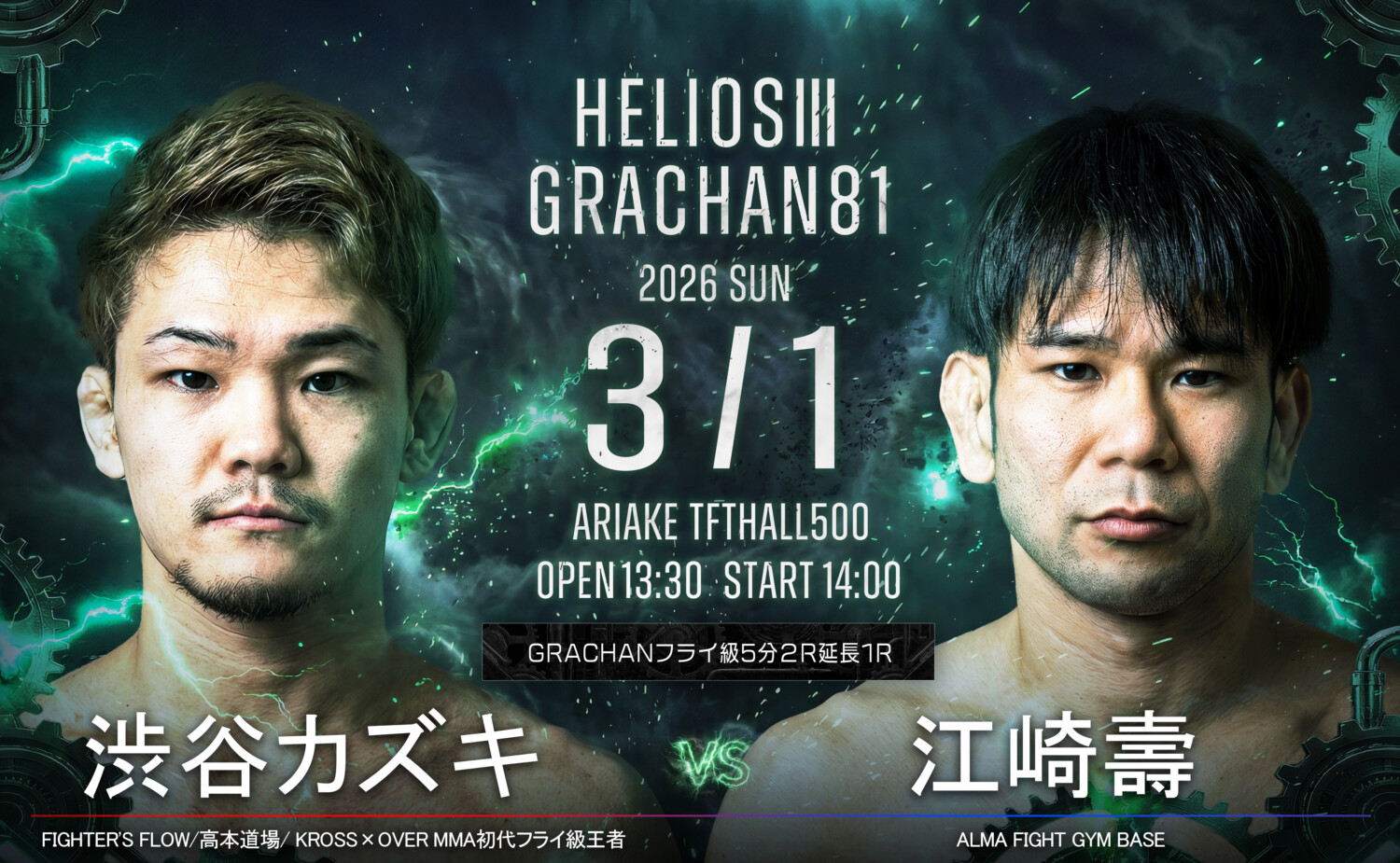 KROSS×OVER MMA初代フライ級王者・渋谷カズキがGRACHANに初参戦。高本道場で磨かれた「足関(レッグロック)」をはじめとする関節技の切れ味は脅威そのもの。