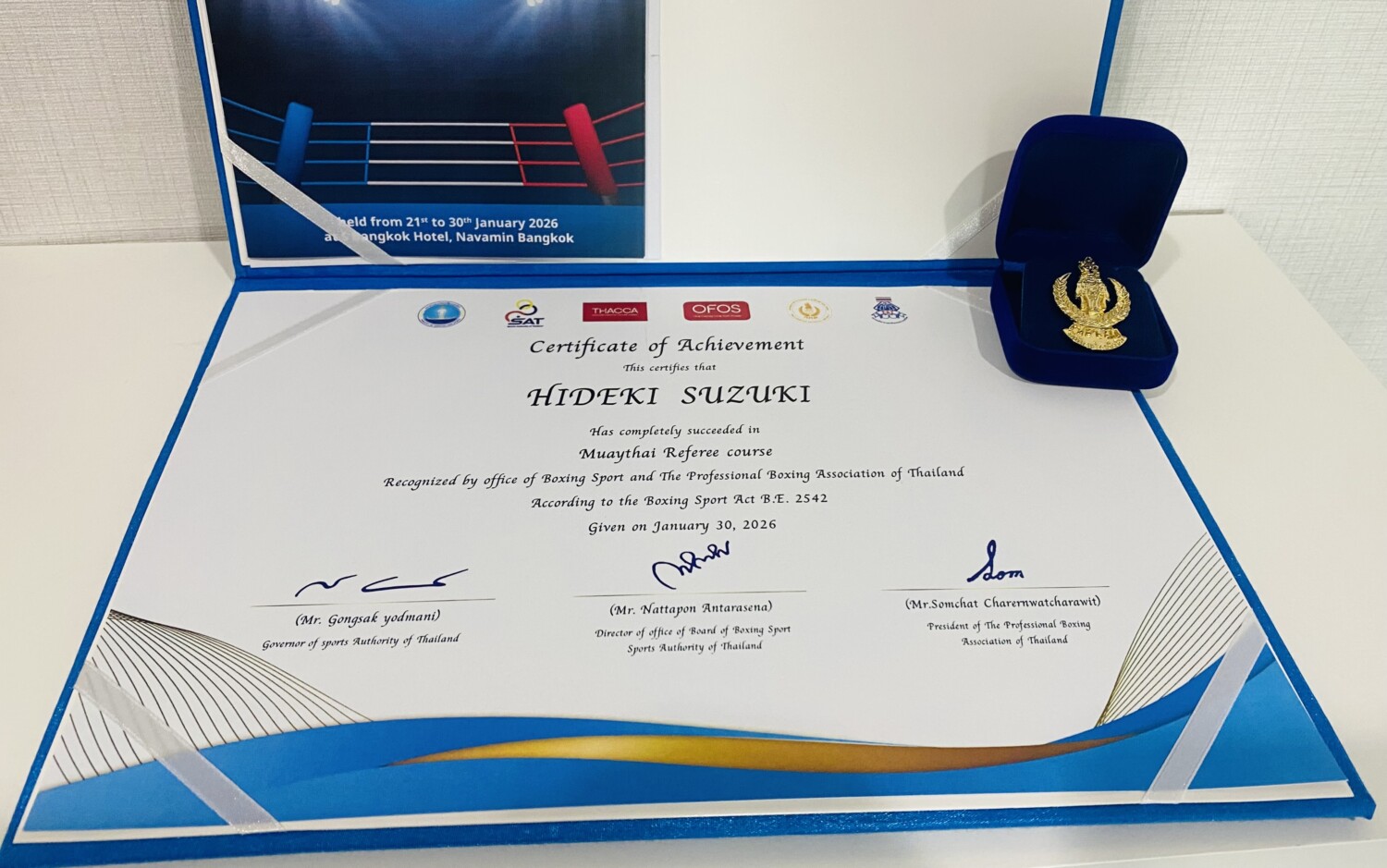 10日間の講習を修了したことで、国が認定するムエタイ競技の公認レフェリーとしての資格取得となり、外国人でも正式にムエタイ競技レフェリーをすることが可能となります。