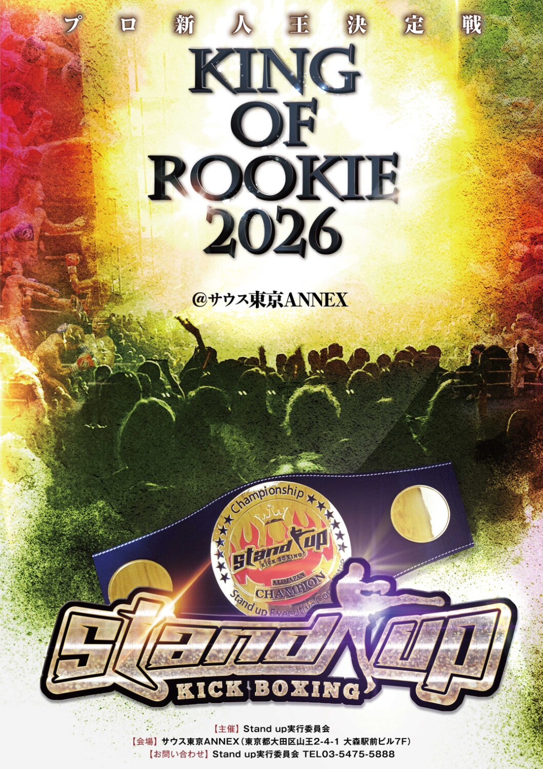 キック5冠王・寺戸伸近がゼネラルマネージャーを務め、若手育成を目的に開催しているキックボクシング大会『Stand up』。この場所から新人王を得て、大舞台にて活躍している選手を多数輩出。毎年、大いに盛り上がりを見せている新人王トーナメント『Stand up King of Rookie』を2026年も10階級で実施することが決定した。(記事提供:全日本新空手道連盟 Stand up実行委員会)