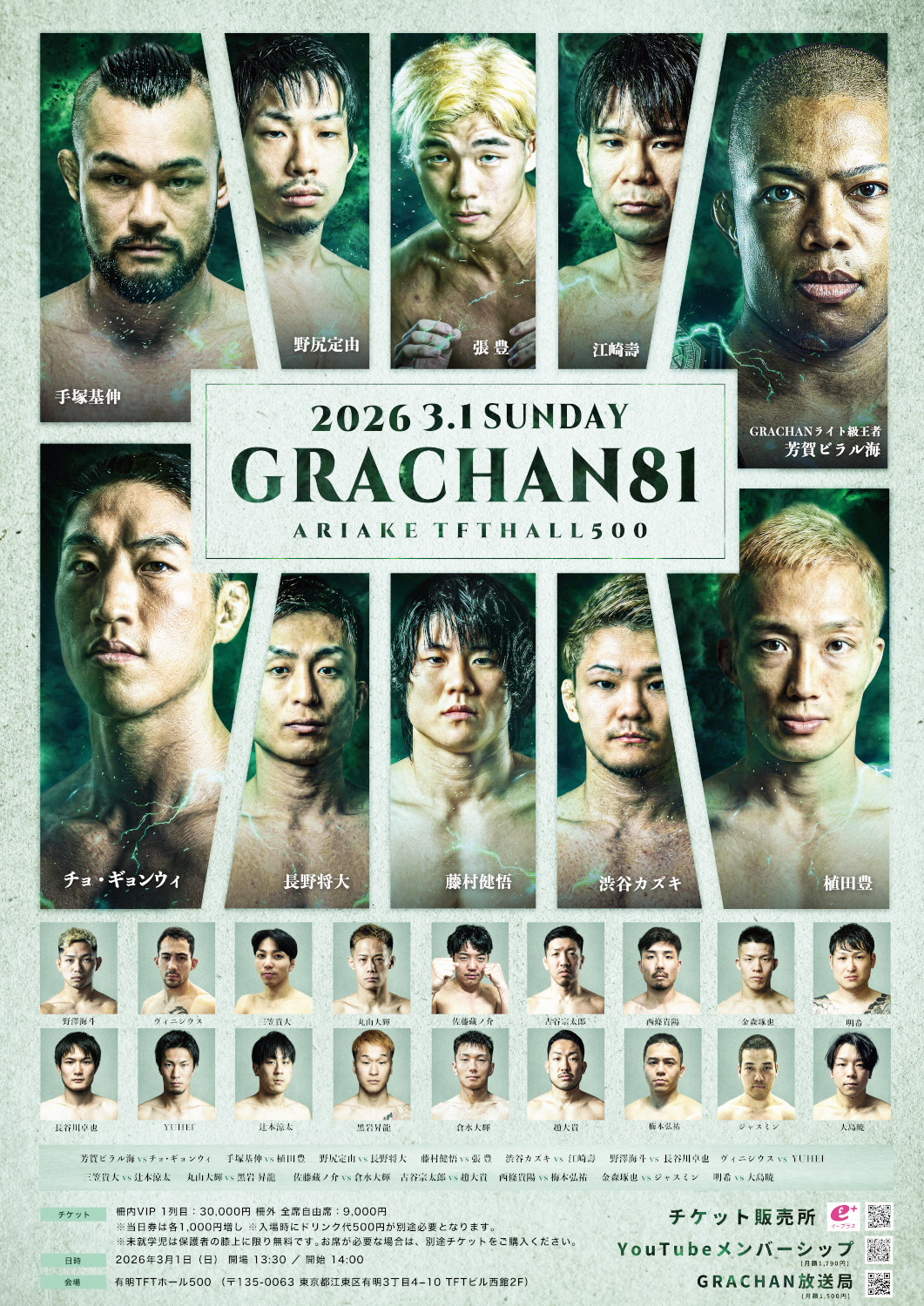 GRACHAN 3.1 有明TFTホール:元バンタム級王者の手塚基伸、フェザー級階級アップ初戦はライト級からフェザー級に落とす植田豊と。全カード揃う