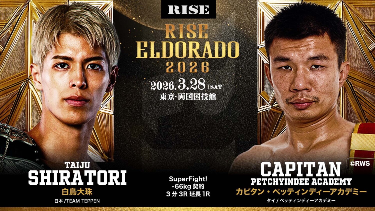 RISE 3.28 両国国技館:白鳥大珠、元ONE王者カピタンと対戦。森本“狂犬”義久、國枝悠太を相手に引退戦。鈴木真彦×伊東龍也、髙木覚清×稲井良弥も決定