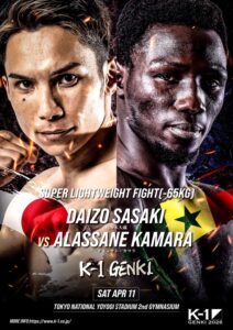 K-1 4.11 代々木第二:アラッサン・カマラ、Sライト級で佐々木大蔵戦。海外で話題の木村萌那が第2部登場|黒川瑛斗、ONE 3連続KO勝ちの芝宏二郎と対戦。上遠野寧吾、バンタム級で白幡裕星戦。池内紀子、初参戦のMelty輝と