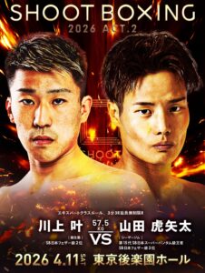 両者は昨年2月のシリーズ開幕戦で対戦し、2度のダウンを奪った川上が大差を付けて判定勝ちしている。あれから約1年2カ月、川上が虎矢太を返り討ちにするか。それとも虎矢太が川上にリベンジを果たすか。