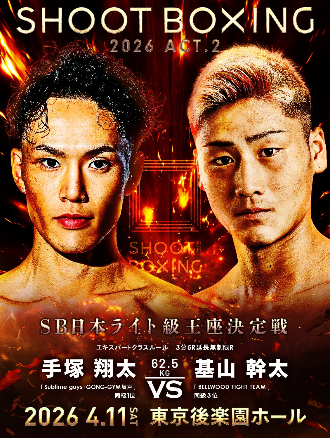 2026年4月11日(土)東京・後楽園ホールで開催されるシリーズ第二戦『SHOOT BOXING 2026 act.2』の第一弾対戦カードが発表された。(記事提供:シュートボクシング協会)