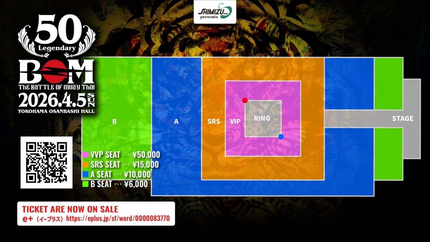 チケット料金 VIP席50,000円 SRS席15,000円 A席10,000円 B席6,000円