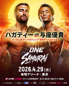 ONE 4.29 有明アリーナ:与座優貴、ジョナサン・ハガティーのキック・バンタム級王座挑戦。若松佑弥、MMAフライ級王座2度目の防衛戦は17戦15勝14フィニッシュの新鋭ホルミルザエフと