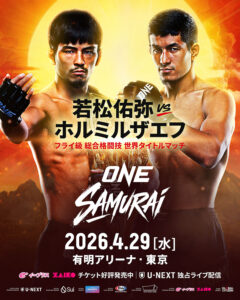 若松は31歳。中学時代にボクシングを習い、15年にMMAデビューし、パンクラスで活躍後、18年からONEに参戦。22年3月にアドリアーノ・モラエスのフライ級王座に挑戦し3Rギロチンで一本負け。続くウ・ソンフン戦でも1R TKO負けし、ランキングから落ちたが、23年7月にシェ・ウェイに1R TKO勝ちし、24年1月、ONEデビュー戦で敗れた相手・ダニー・キンガッドに判定勝ちでリベンジした。12月にはギルバート・ナカタニに判定勝ちし連勝を3に伸ばすと、昨年3月の埼玉大会で王者モラエスに挑戦して1R TKO勝ちし、リベンジとベルト奪取を果たした。11月の有明大会ではジョシュア・パシオに2R TKO勝ちし王座初防衛に成功。今回2度目の防衛戦を迎える。