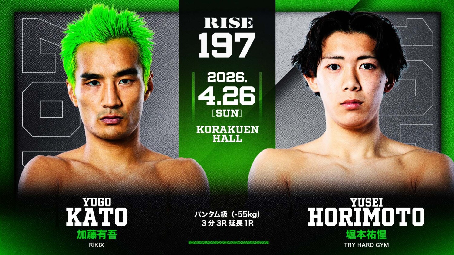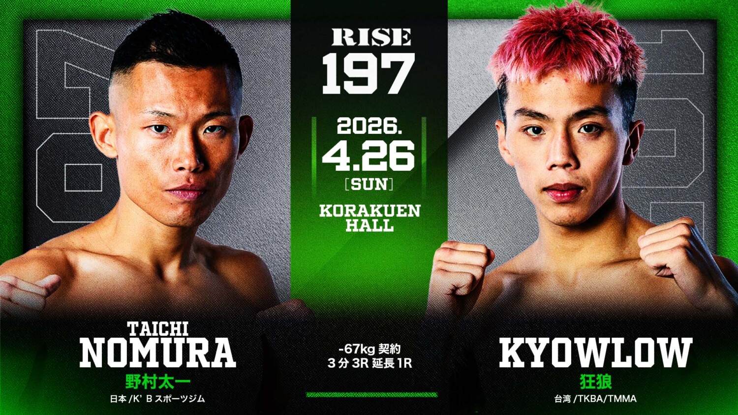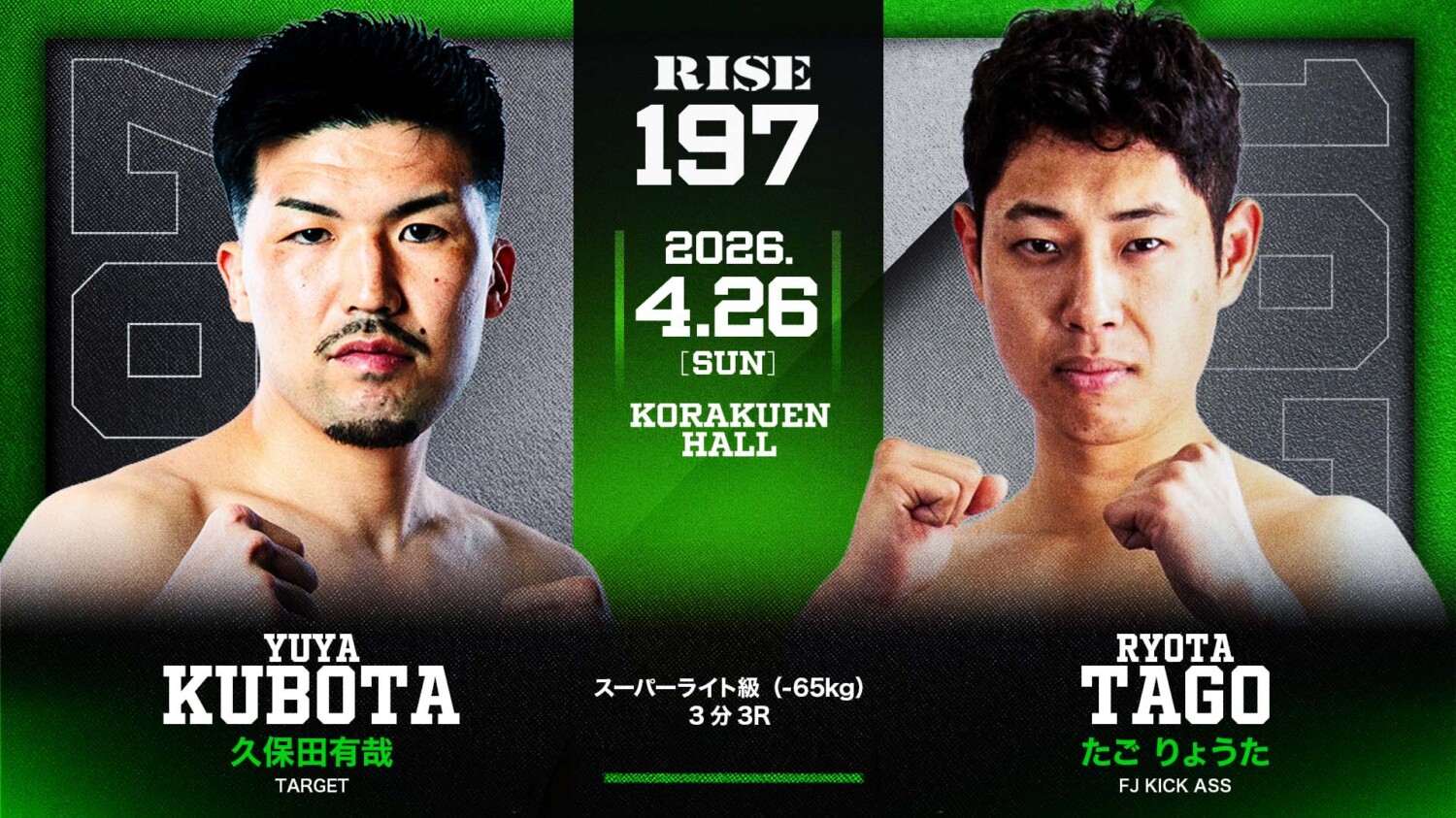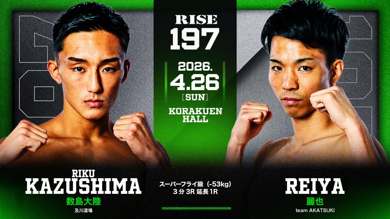 RISE 197(4月26日(日)後楽園ホール)の対戦カードが発表された。(※会見記事は3月8日に掲載します)