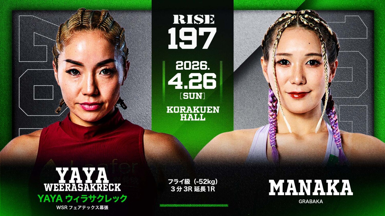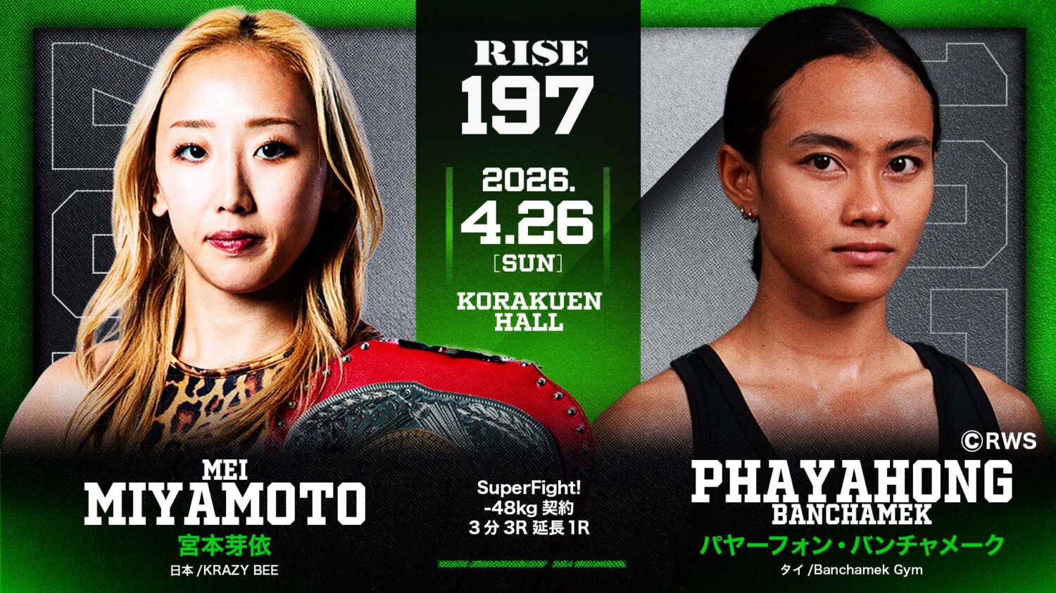 RWSからパヤーフォン・バンチャメークのRISE初参戦が決定。現在23歳のパヤーフォンは初代ラジャダムナンスタジアム認定女子ミニマム級王者、初代K-1 WORLD GP 女子アトム級王者、WPMF世界女子ピン級王者など若くして数々の王座を獲得している。2025年6月にハンガリーで開催されたキックボクシングワールドカップで金メダルを獲得するなど国際舞台でも活躍している。