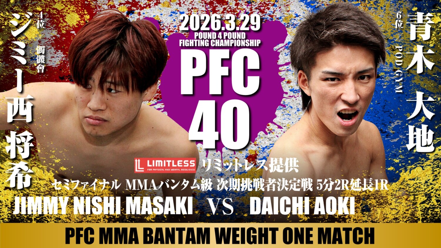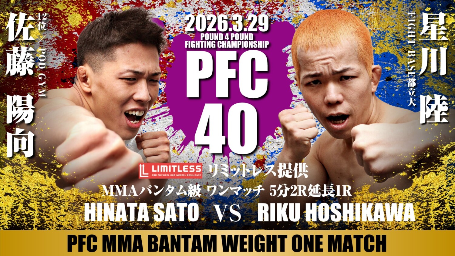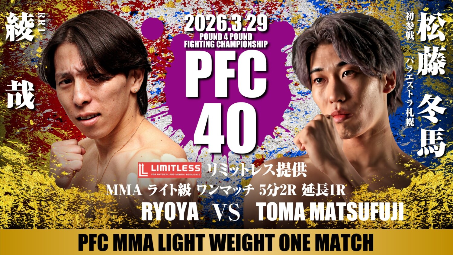 PFC.40(3月29日(日)北海道・札幌 PODアリーナ)の対戦カードが発表された。