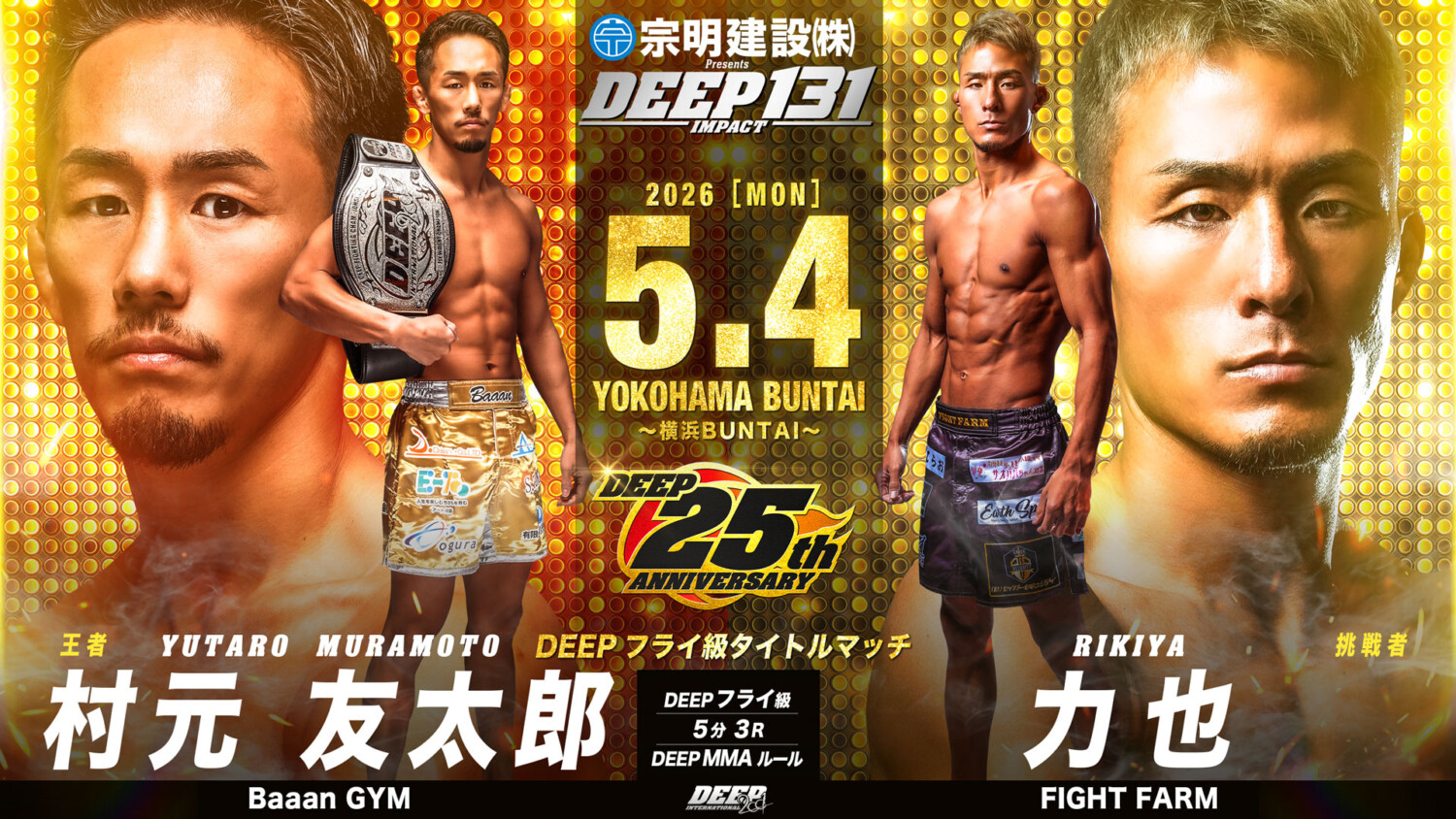 DEEP 5.4 横浜BUNTAI:村元友太郎、フライ級王座初防衛戦は力也と。KENTAは「格闘技を教えてくれた」関原翔と対戦。窪田泰斗×小崎連、杉野亜蓮×ダイヤも決定