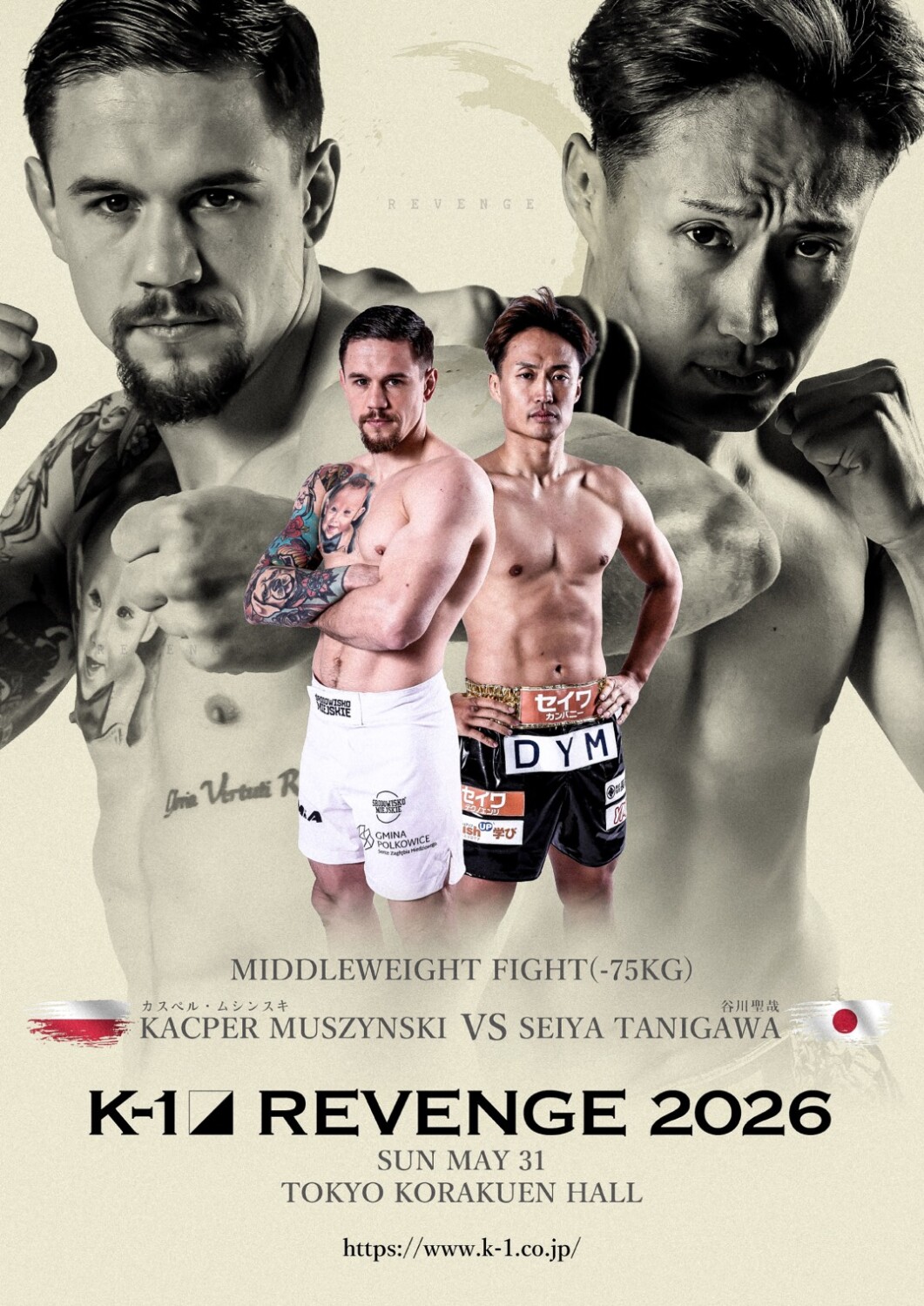 K-1 REVENGE(5月31日(日)後楽園ホール)に出場するカスペル・ムシンスキの相手が、谷川聖哉に決まった。75kgのミドル級で対戦する。